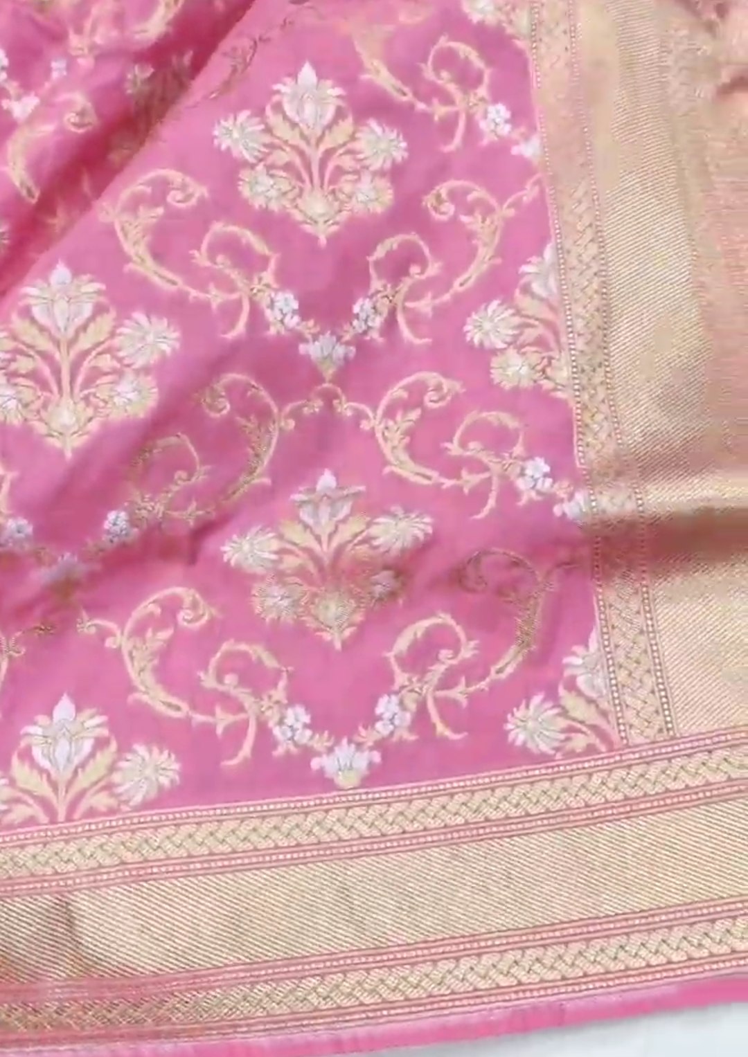 Pink Banarasi Soft Katan Silk Tilfi Meenakari Saree