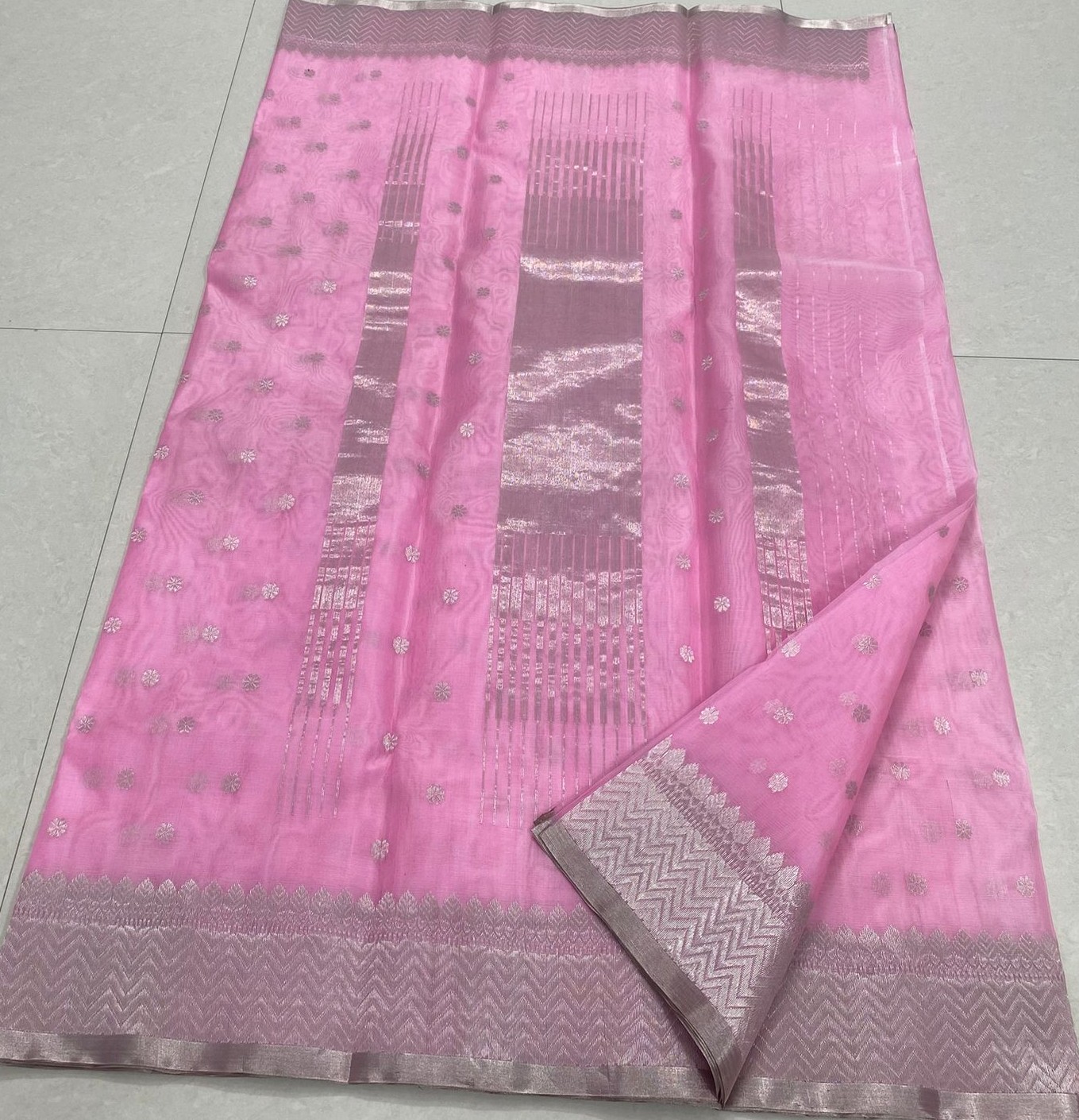Baby Pink Chanderi Handloom Katan Silk Meenakari Saree