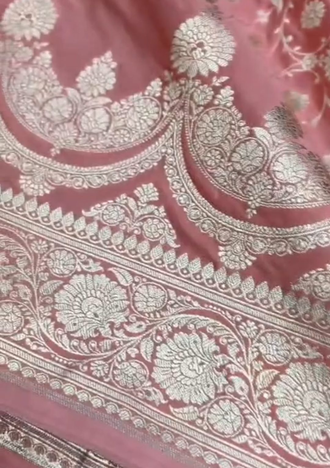 Peach Banarasi Mashru Soft Silk Jangla Saree