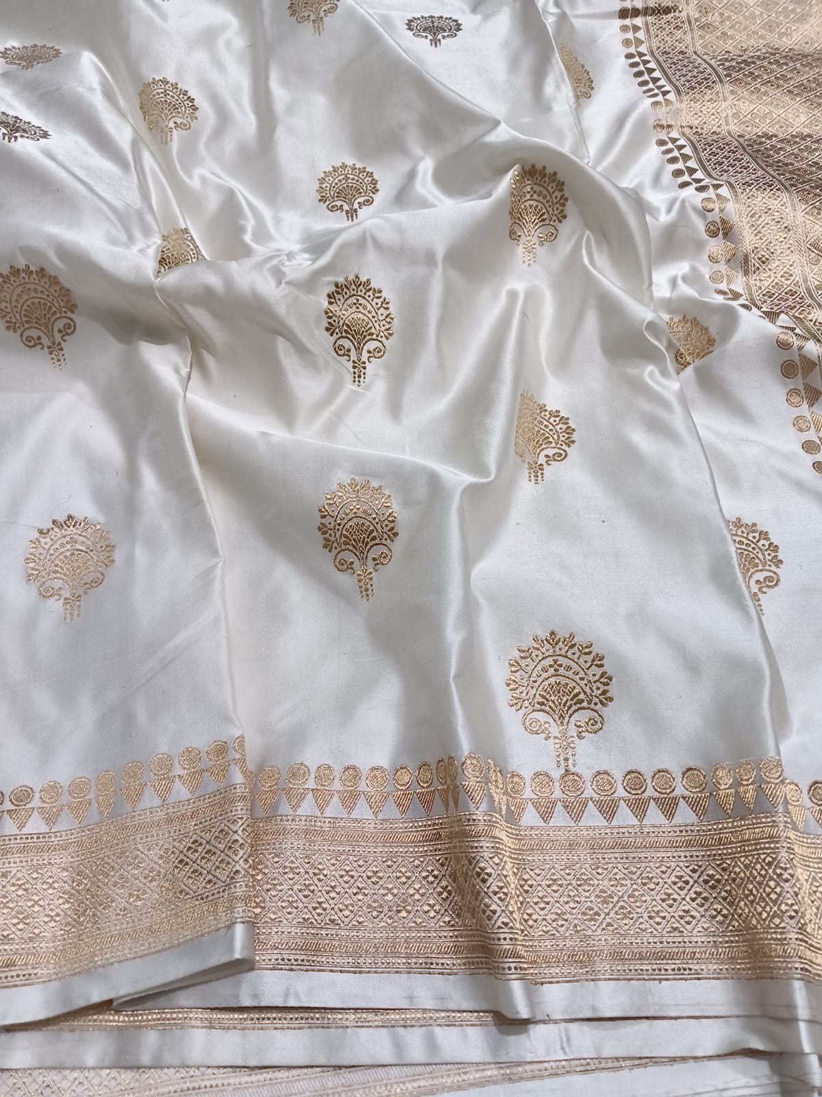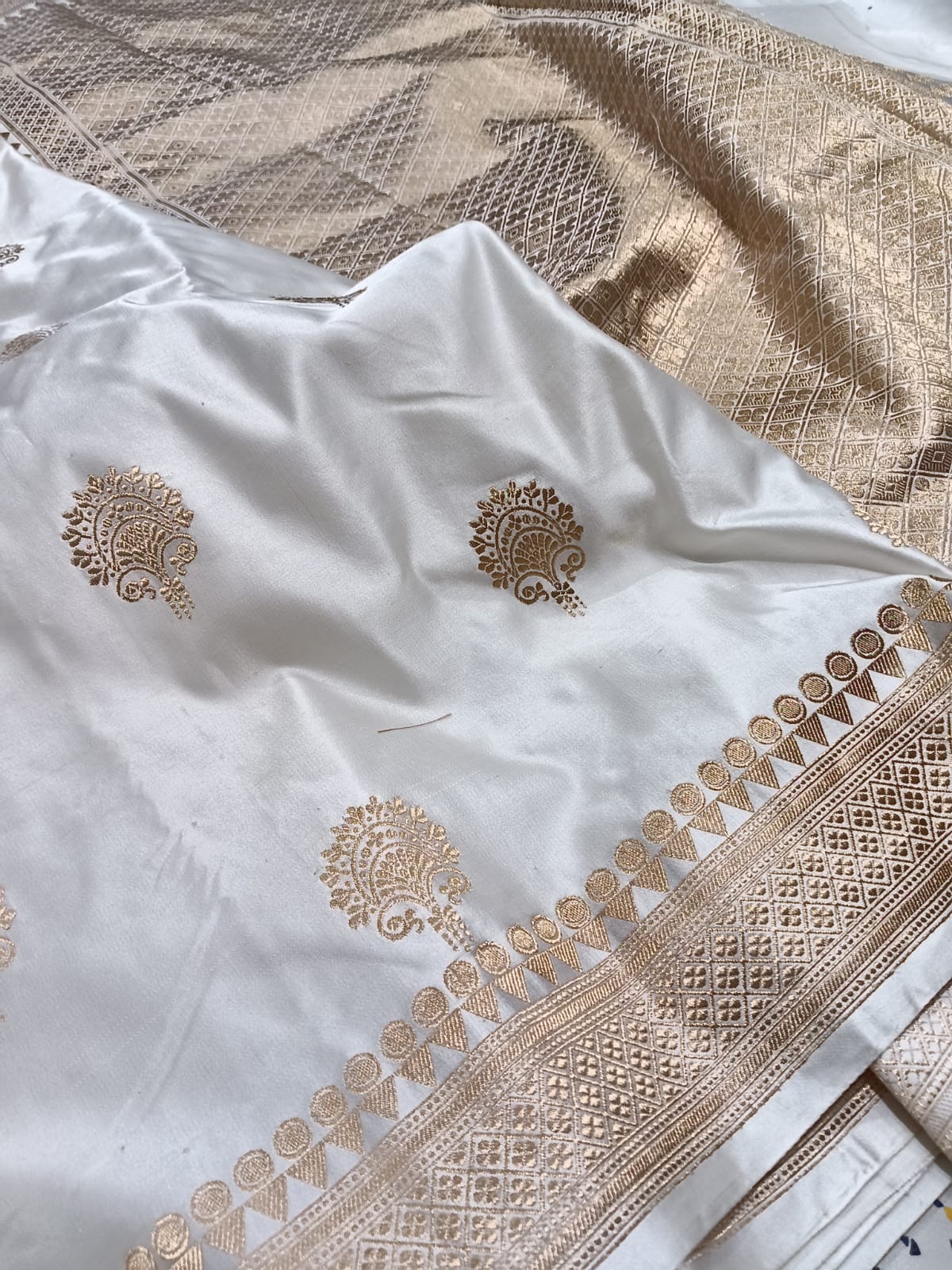Pearl White Banarasi Handloom Mashru Silk Saree