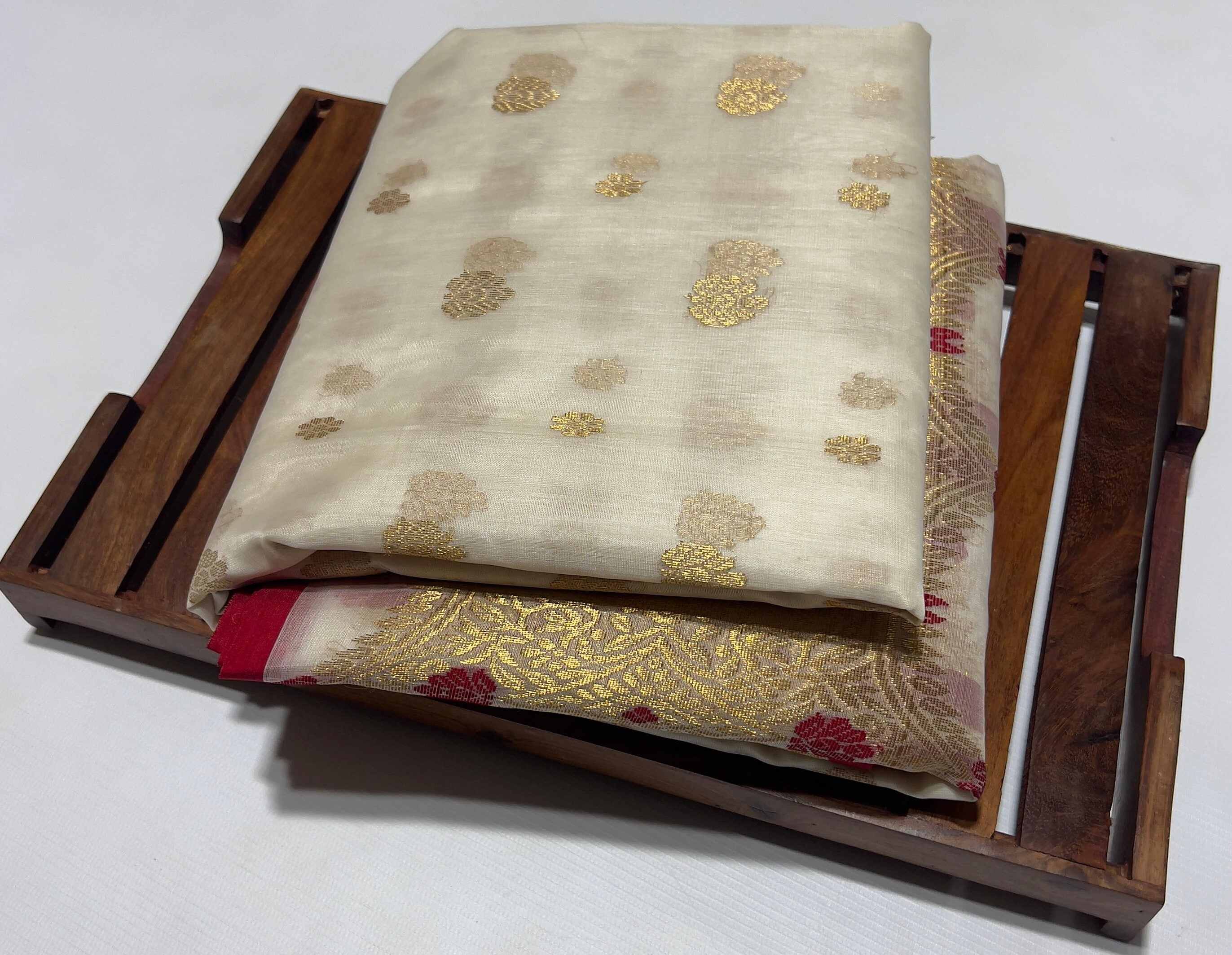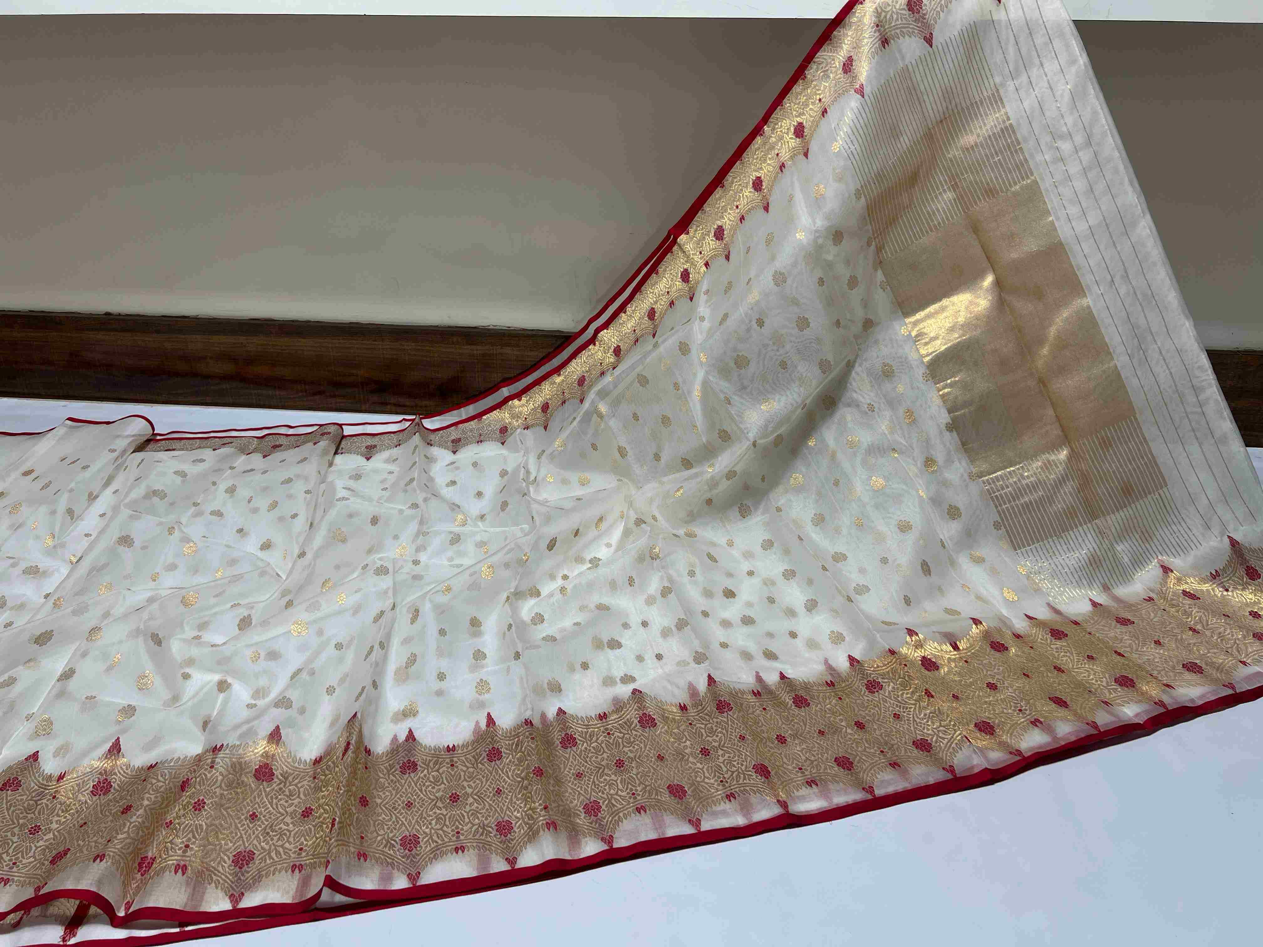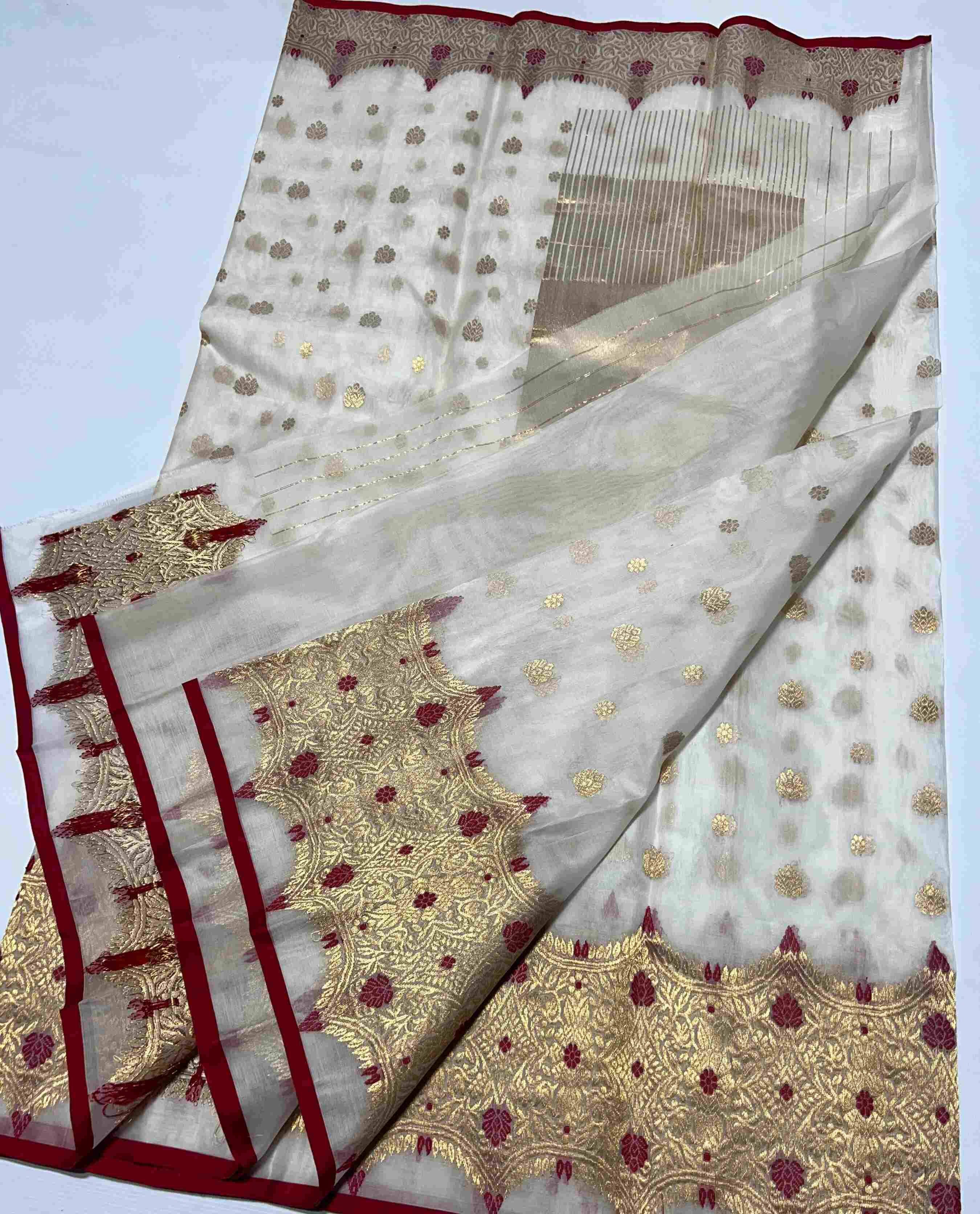 Pearl White Chanderi Handloom Katan Silk Meenakari Saree