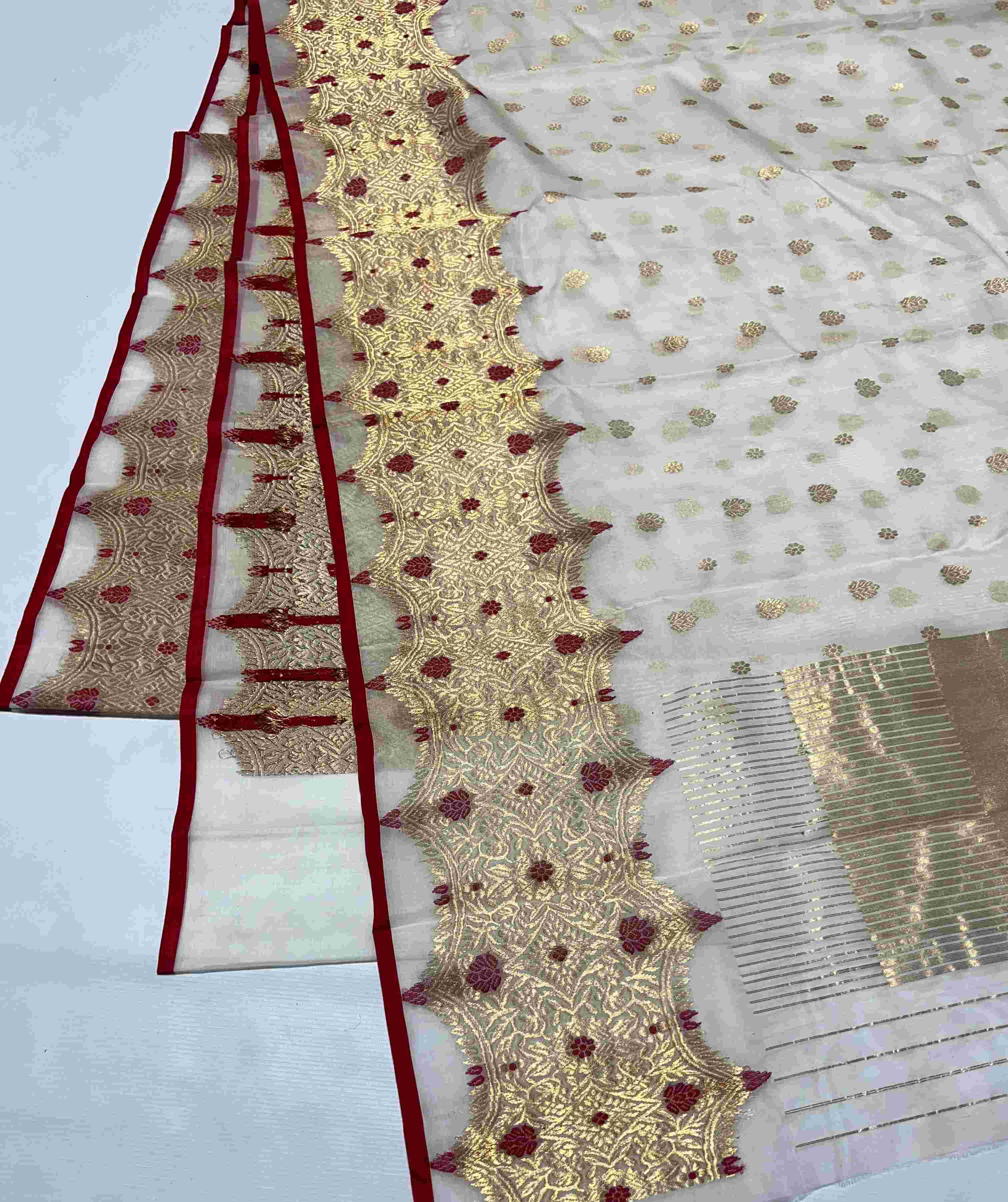 Scallops, Butta, Meenakari, Gold Zari