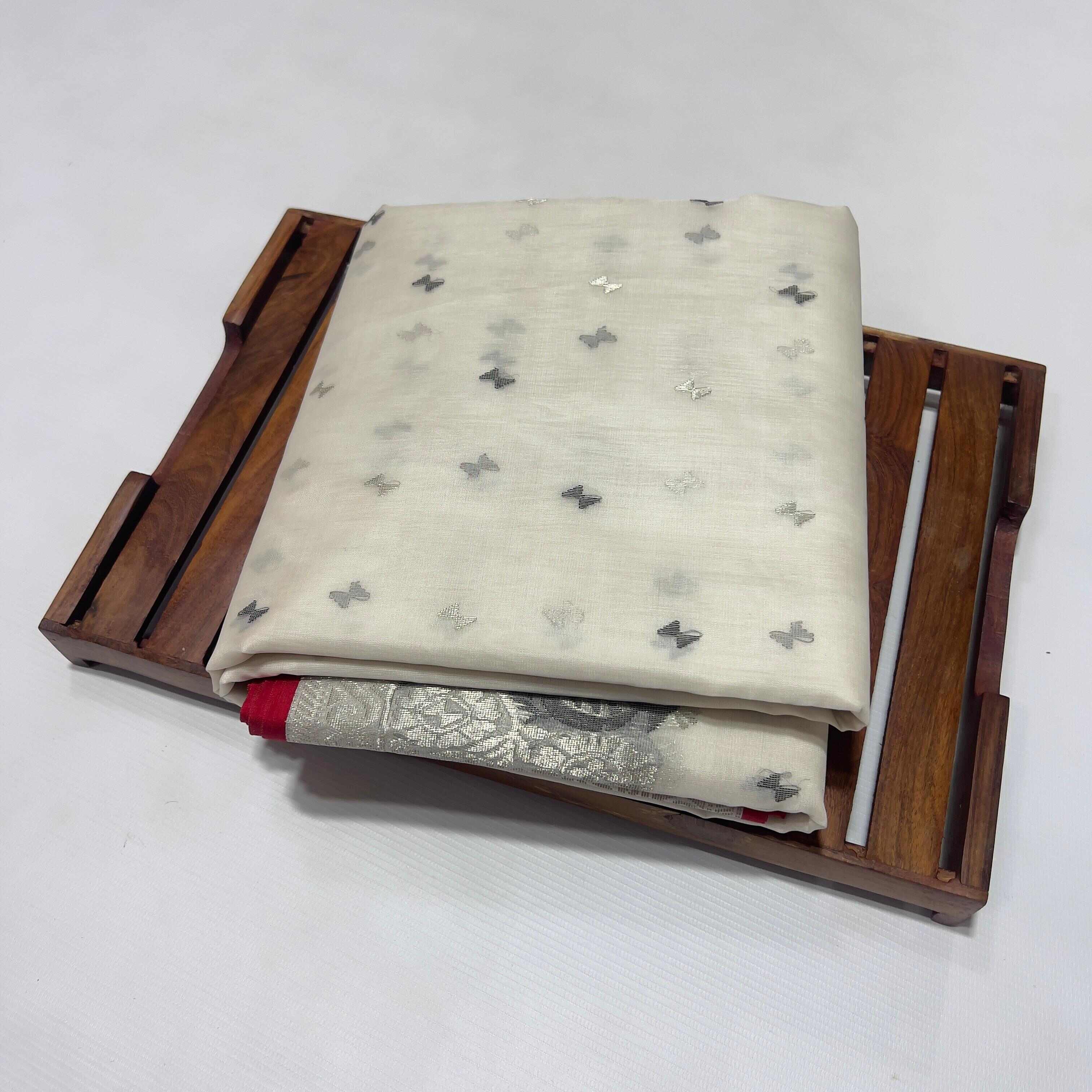 Pearl White Chanderi Handloom Katan Silk Saree
