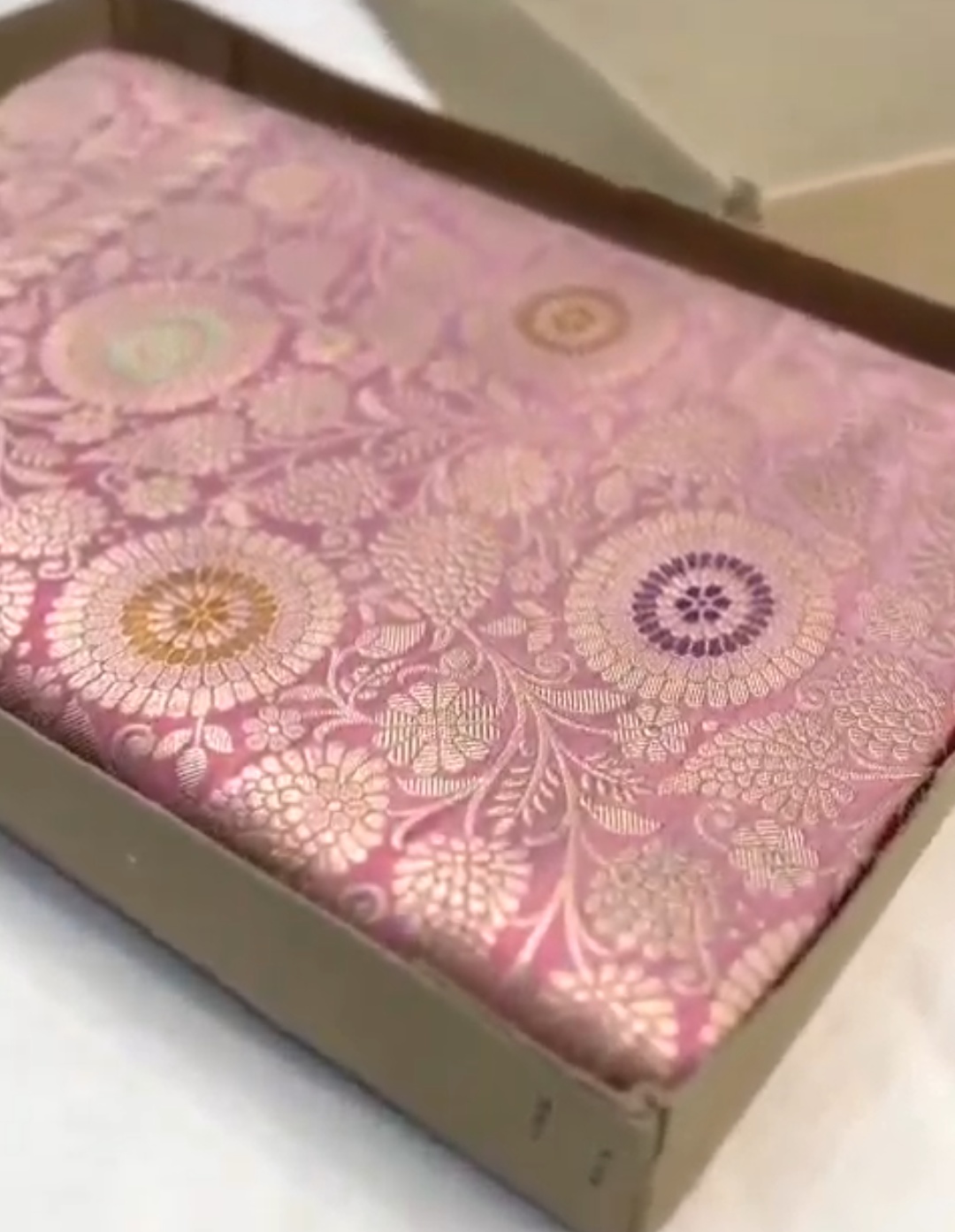 Pinkish Beige Banarasi Handloom Katan Silk Brocade Saree