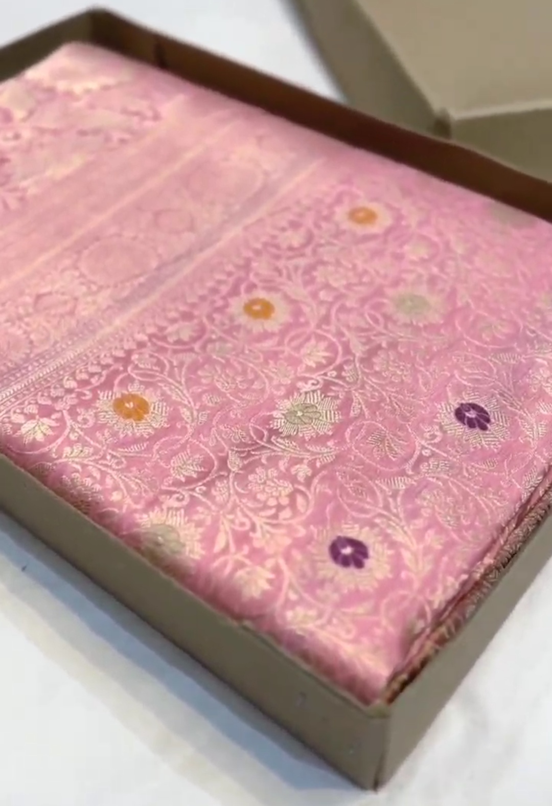 Pink Banarasi Handloom Katan Silk Meenakari Saree