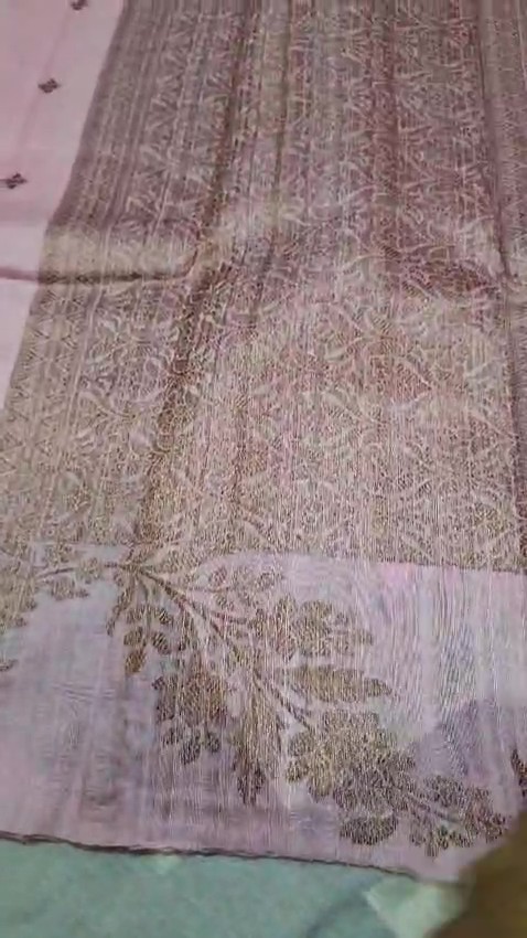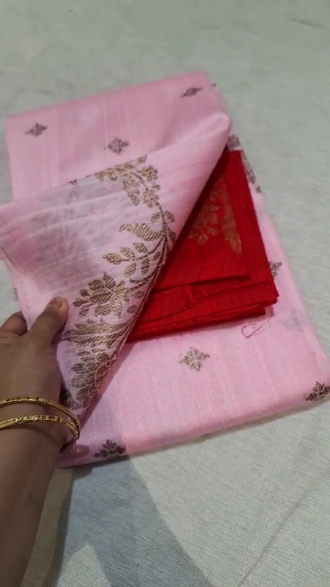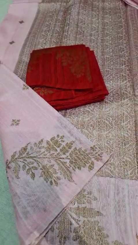 Pink Banarasi Handloom Tussar Raw Silk Saree