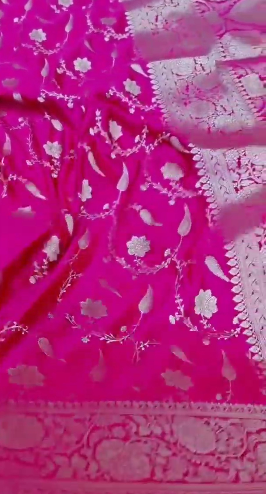 Hot Pink Banarasi Mashru Soft Silk Saree