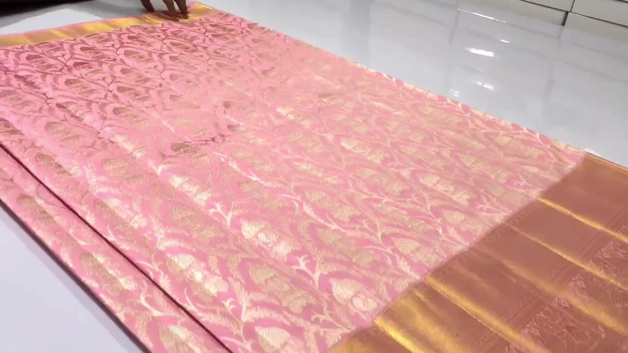 Onion Pink Kanchipuram Handloom Tissue Brocade Silk Saree