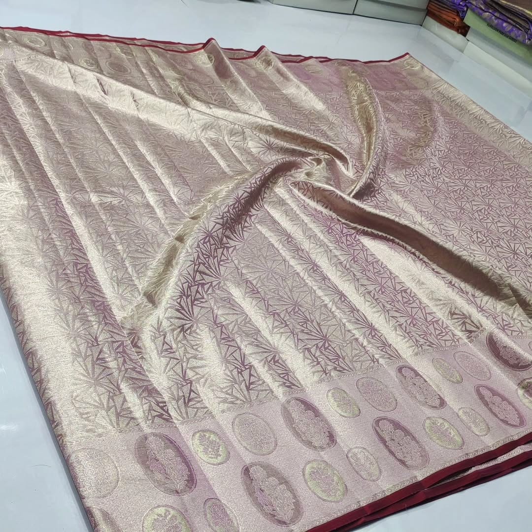 Pinkish Beige Kanchipuram Handloom Tissue Brocade Silk Saree
