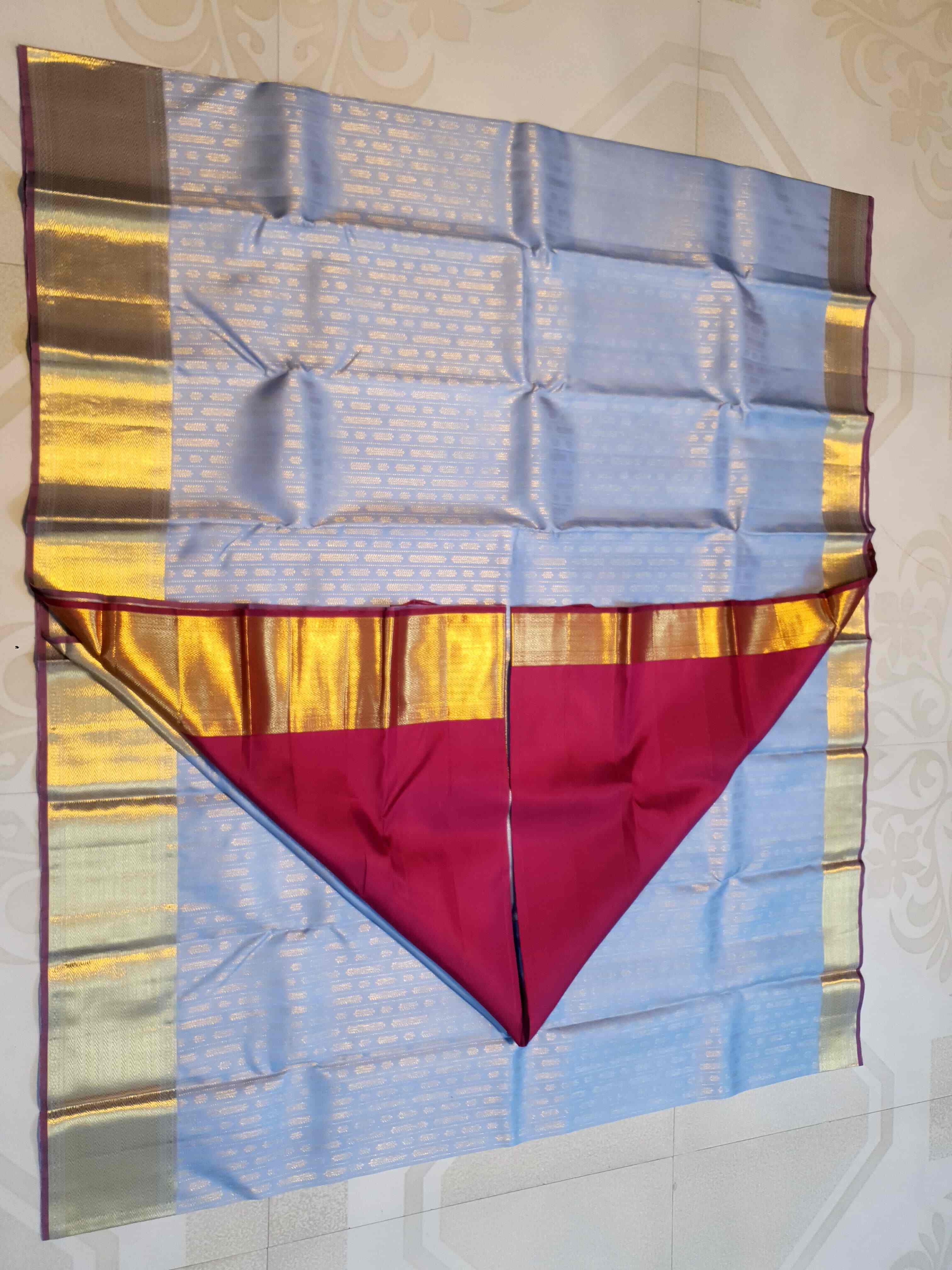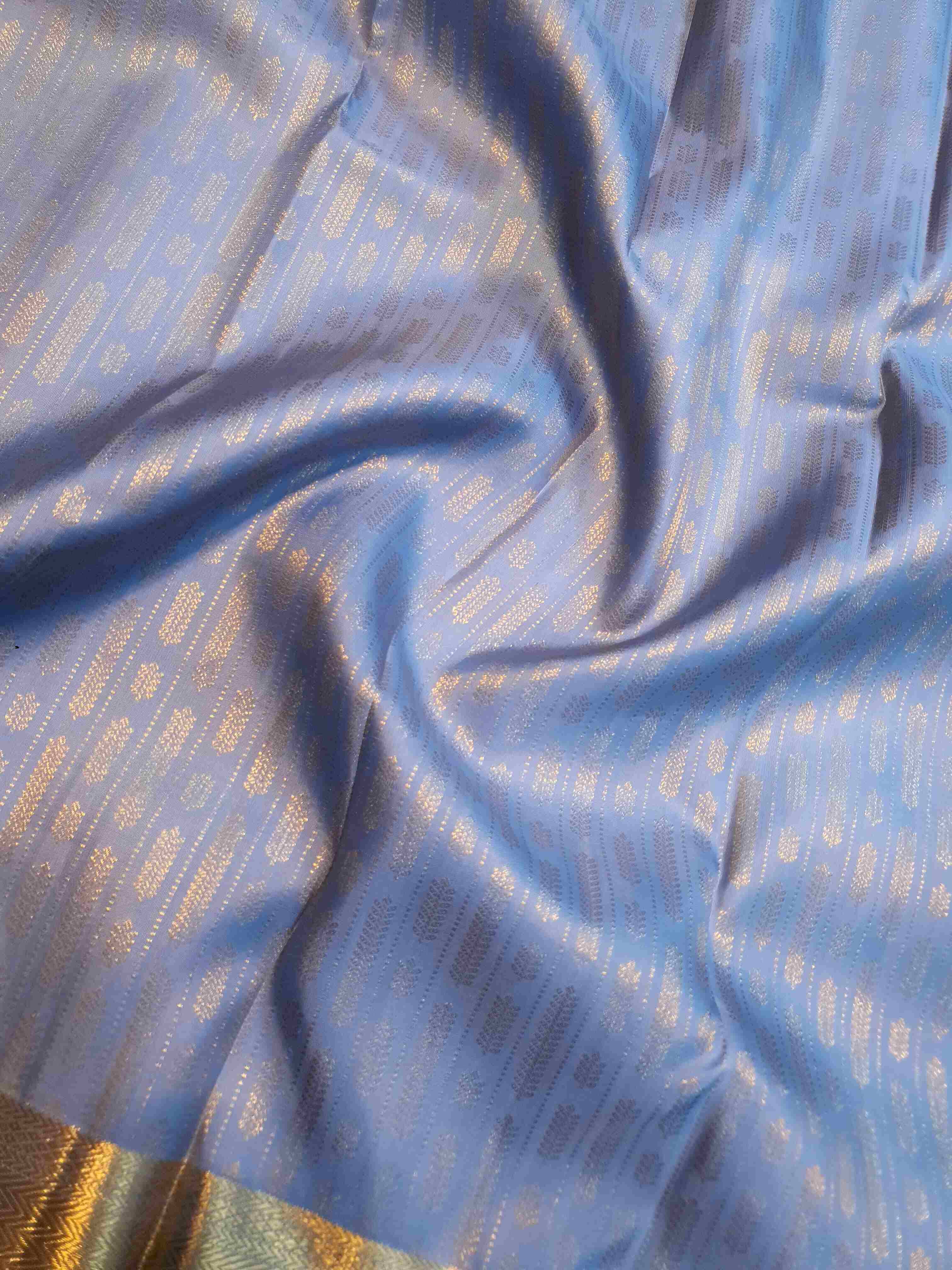 Powder Blue Kanchipuram Handloom 2G Gold Pattu Silk Saree