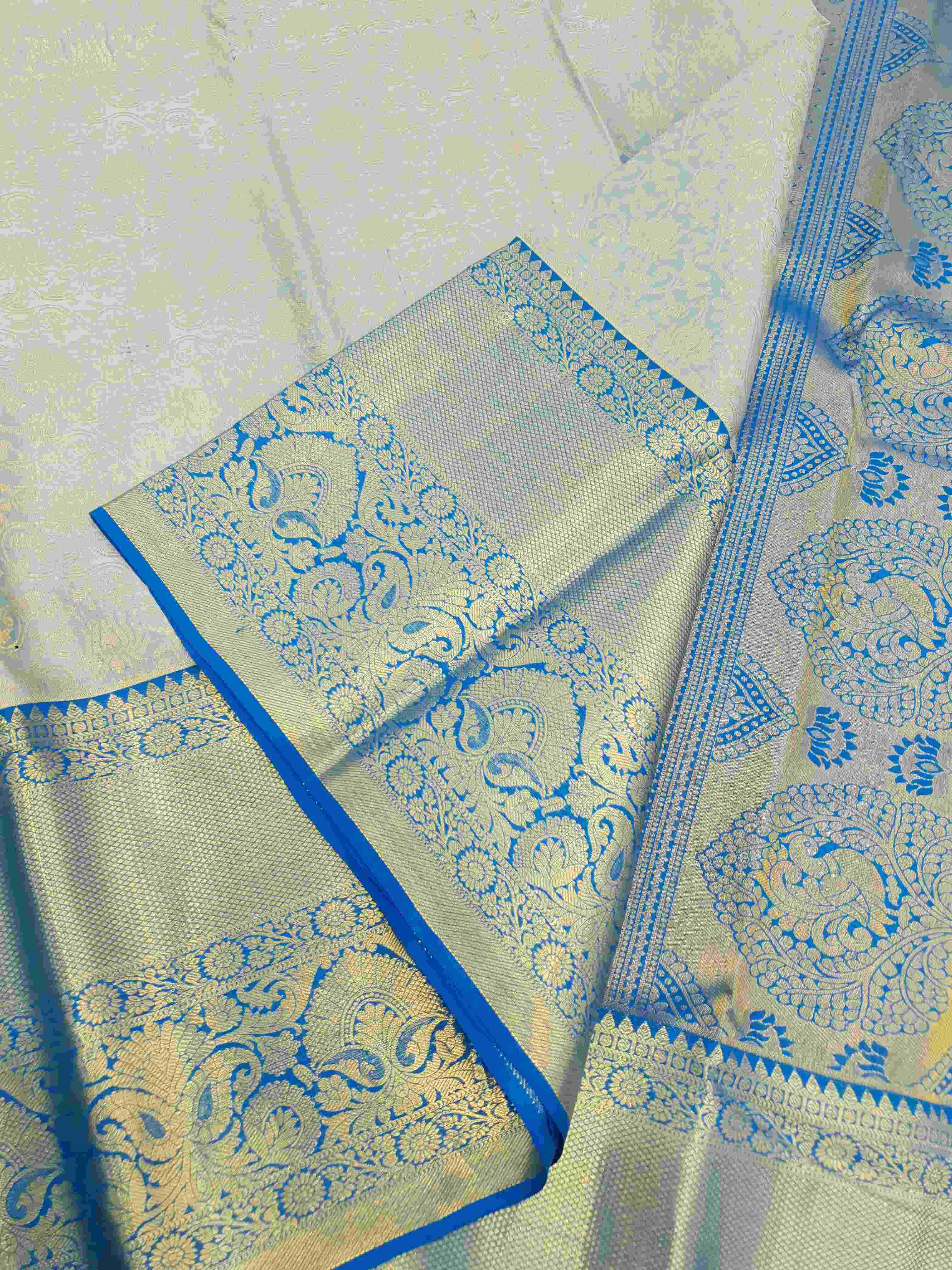 Powder Blue Kanchipuram Handloom 2G Gold Pattu Silk Saree