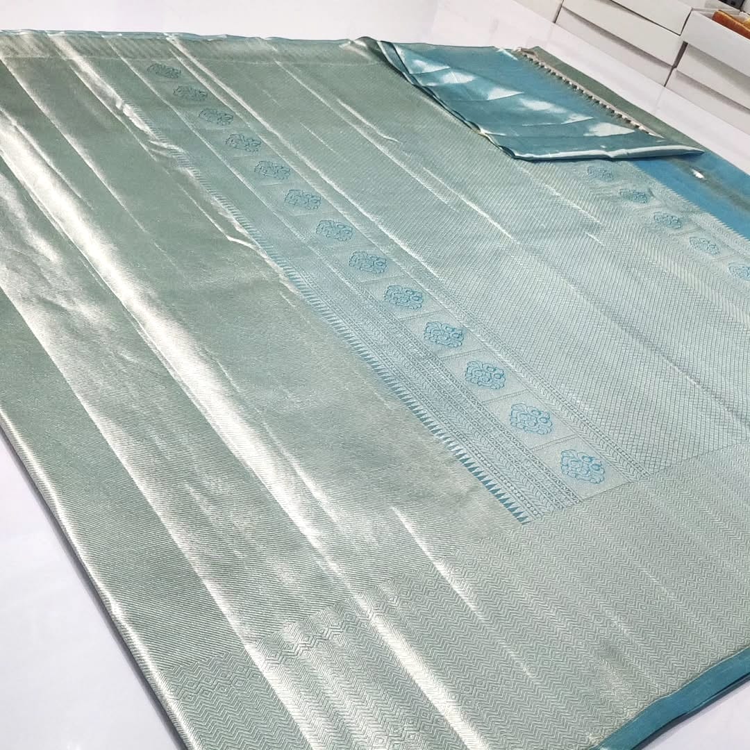 Turquoise Kanchipuram Handloom Tissue Brocade Silk Saree