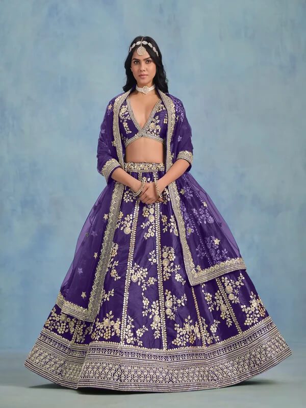 purple art silk lehenga, embroidered purple lehenga choli, party wear silk lehenga, wedding purple lehenga, festive thread & sequins lehenga, designer purple art silk lehenga, luxury purple lehenga choli