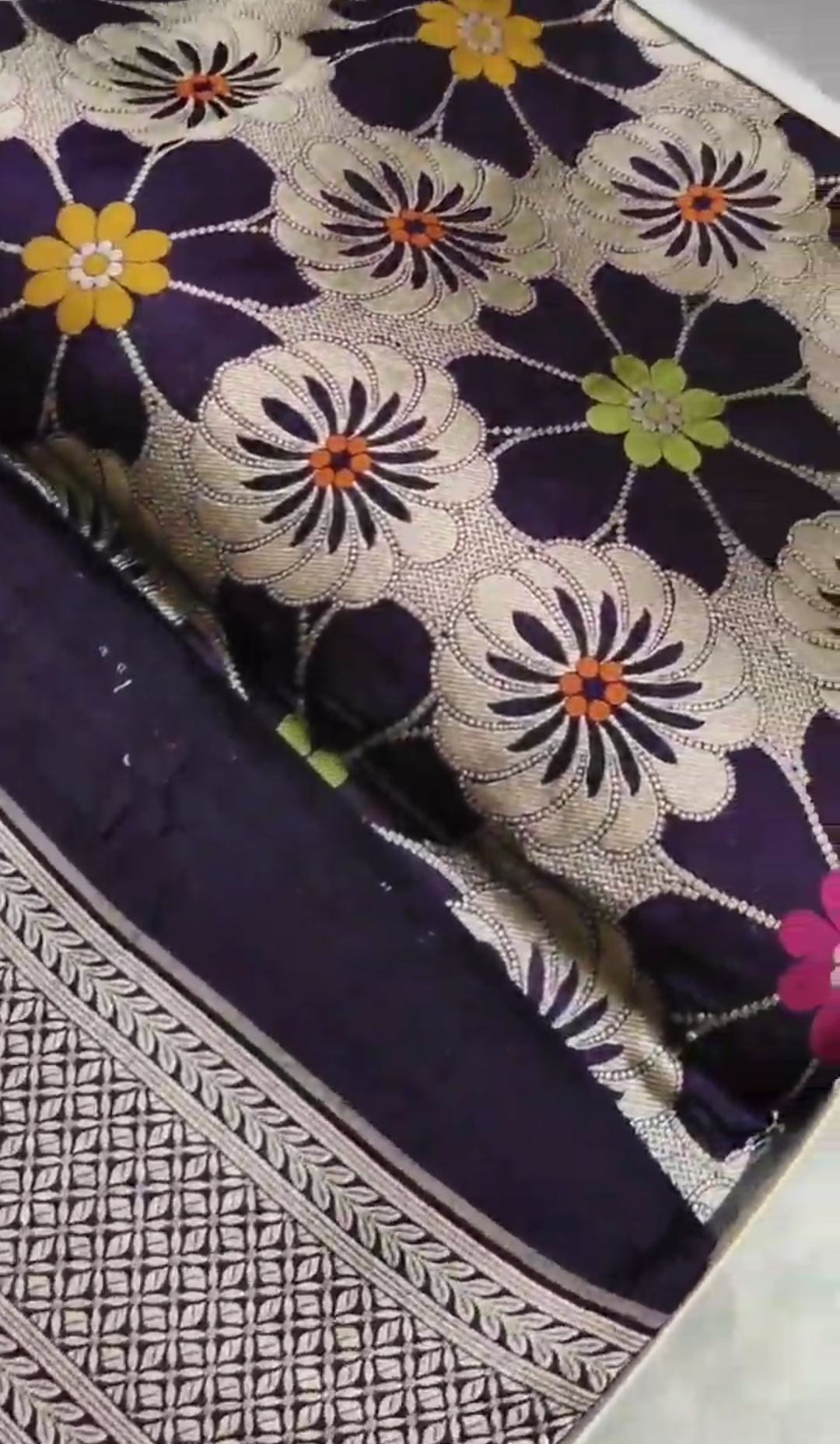Dark Purple Banarasi Handloom Katan Silk Meenakari Saree