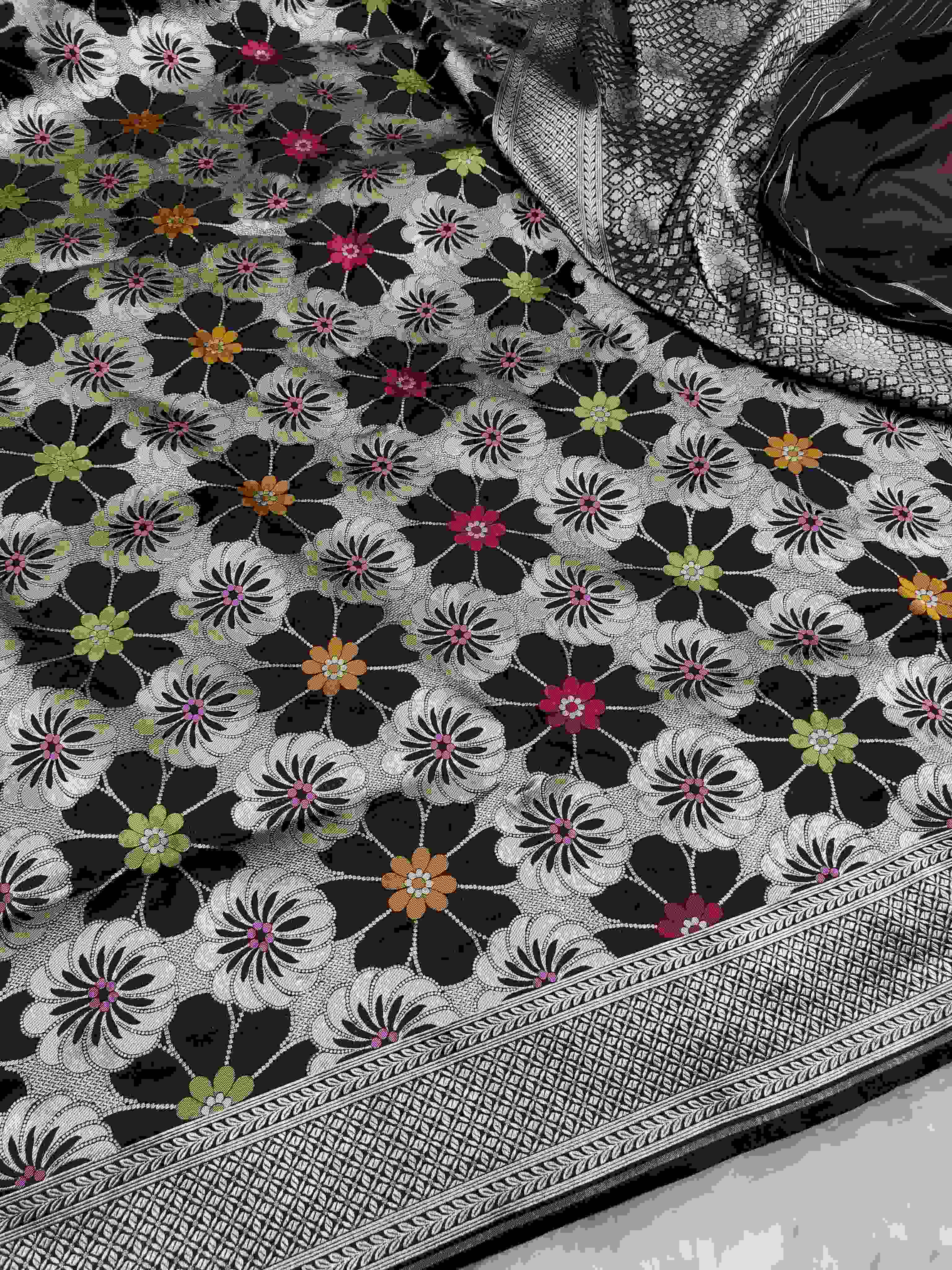Black Banarasi Handloom Katan Silk Meenakari Saree