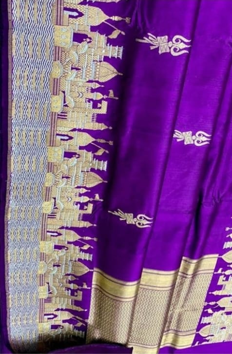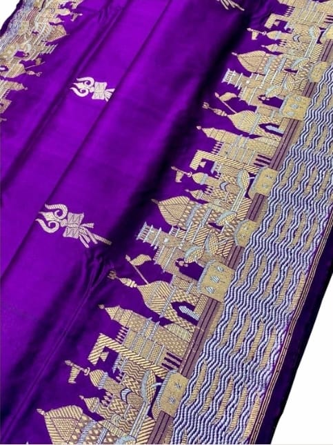 Purple Banarasi Handloom Katan Silk Kashi Ghat Meenakari Saree
