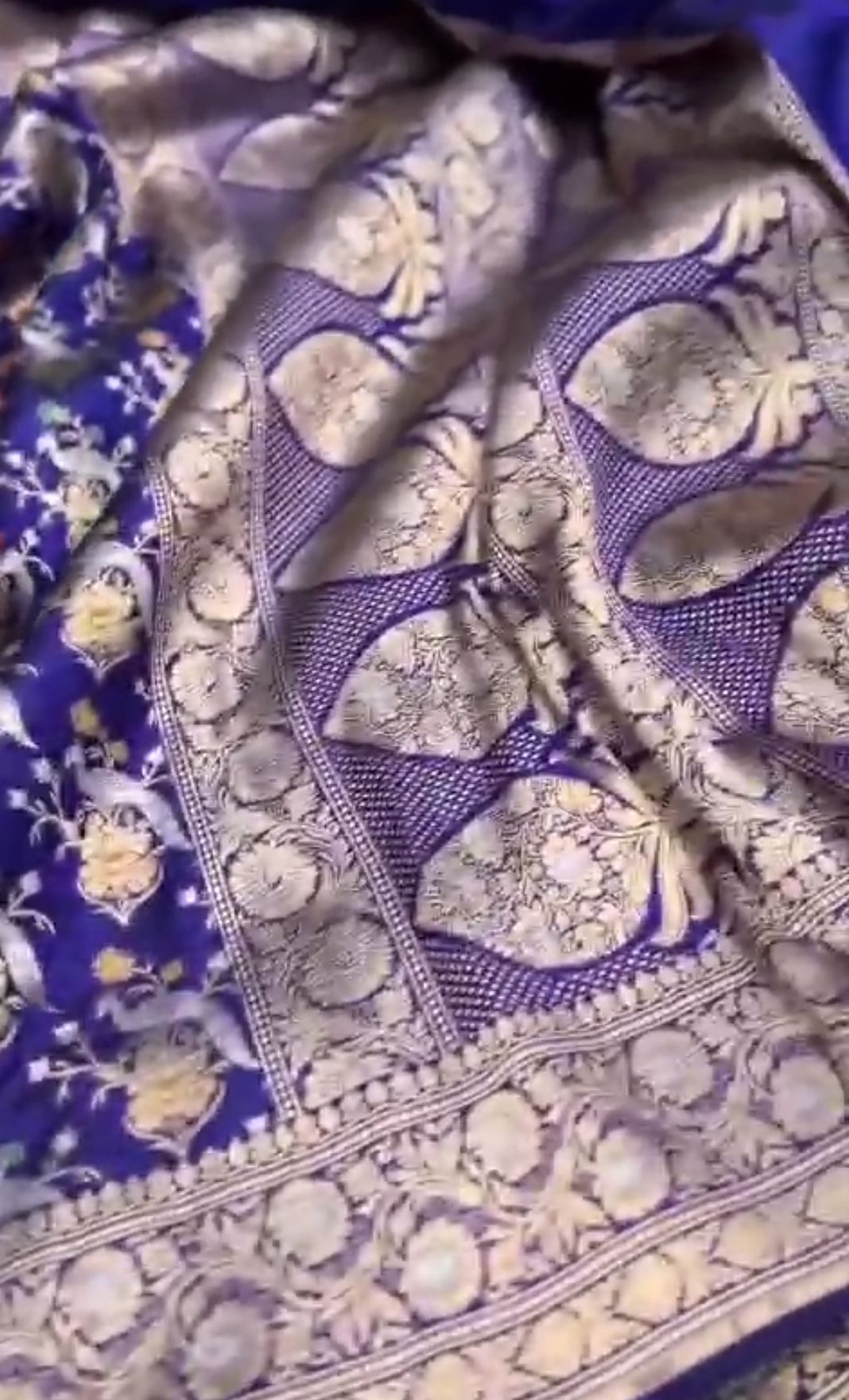 Royal Blue Banarasi Handloom Katan Silk Meenakari Saree
