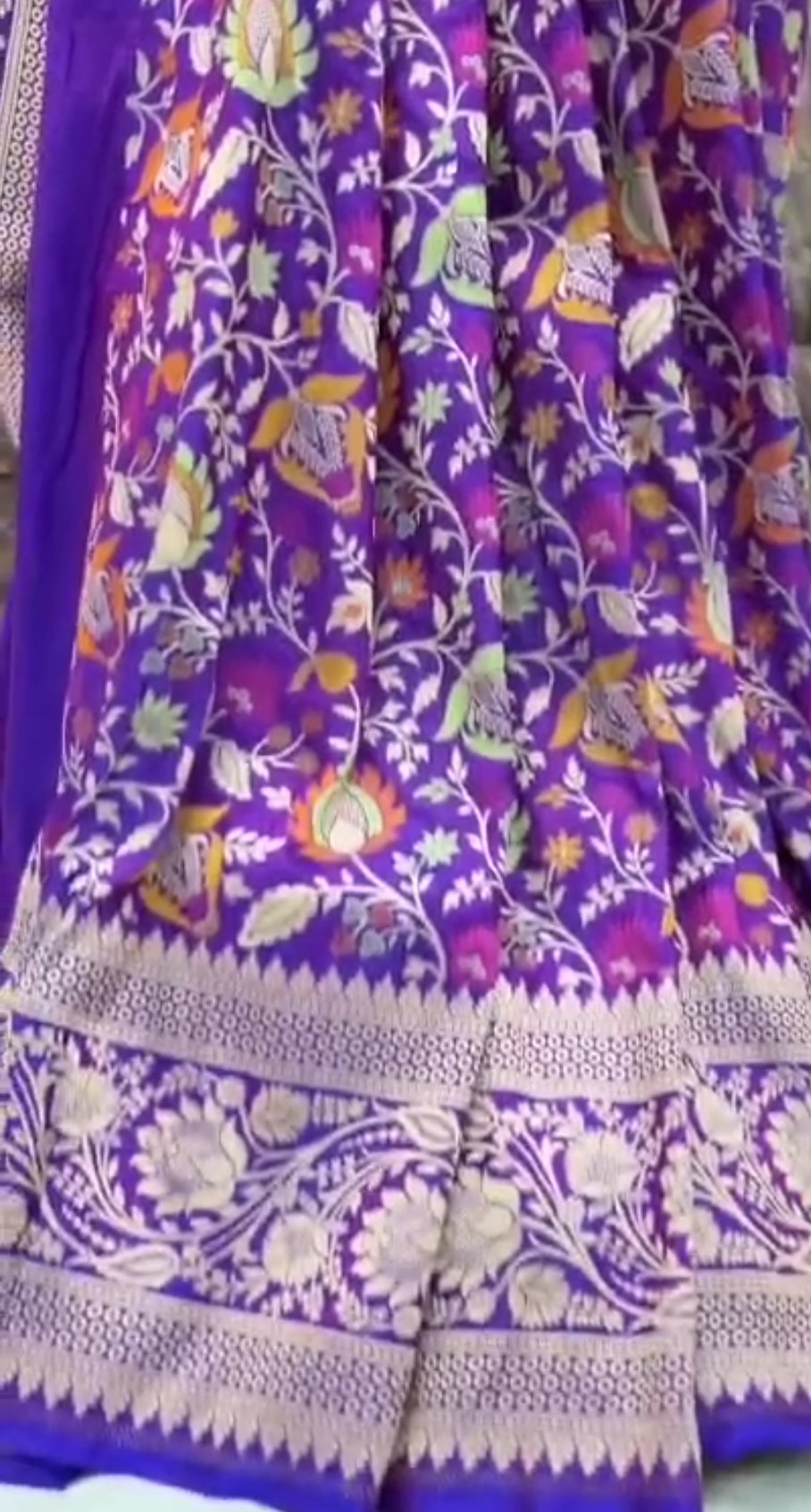 Purple Banarasi Handloom Katan Silk Rangkaat Meenakari Saree