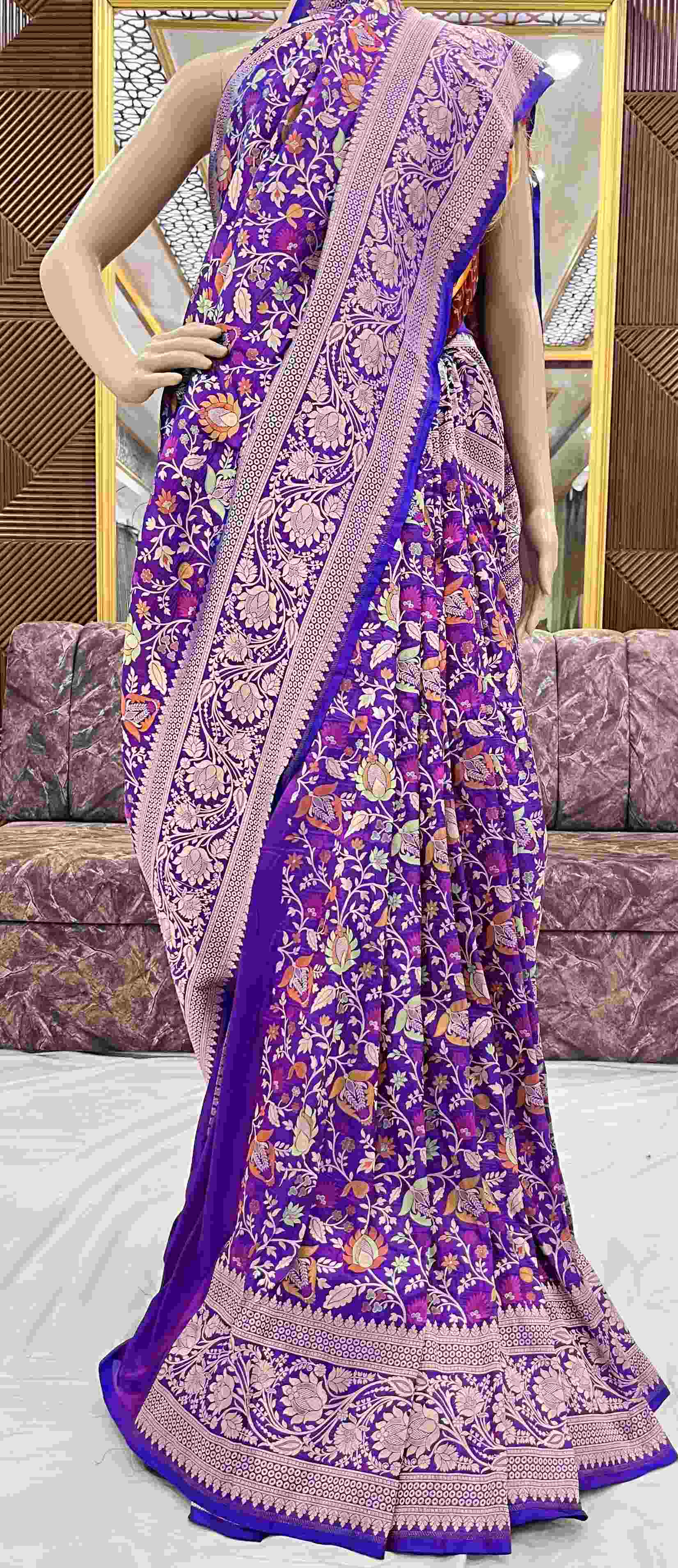 Purple Banarasi Handloom Katan Silk Meenakari Saree