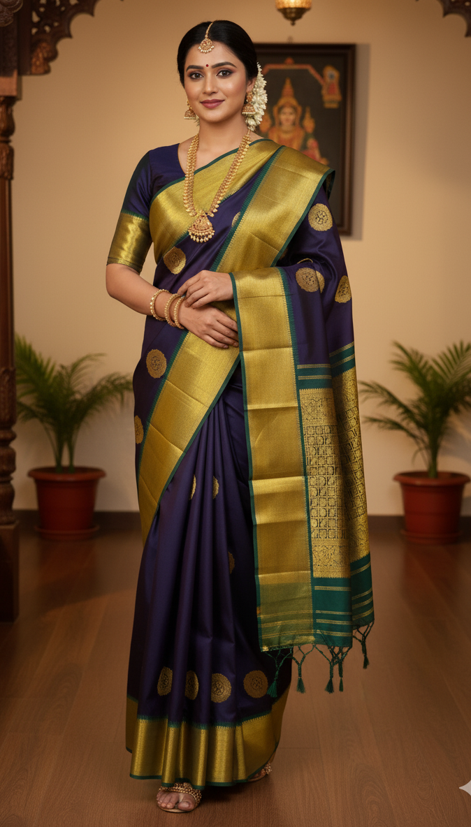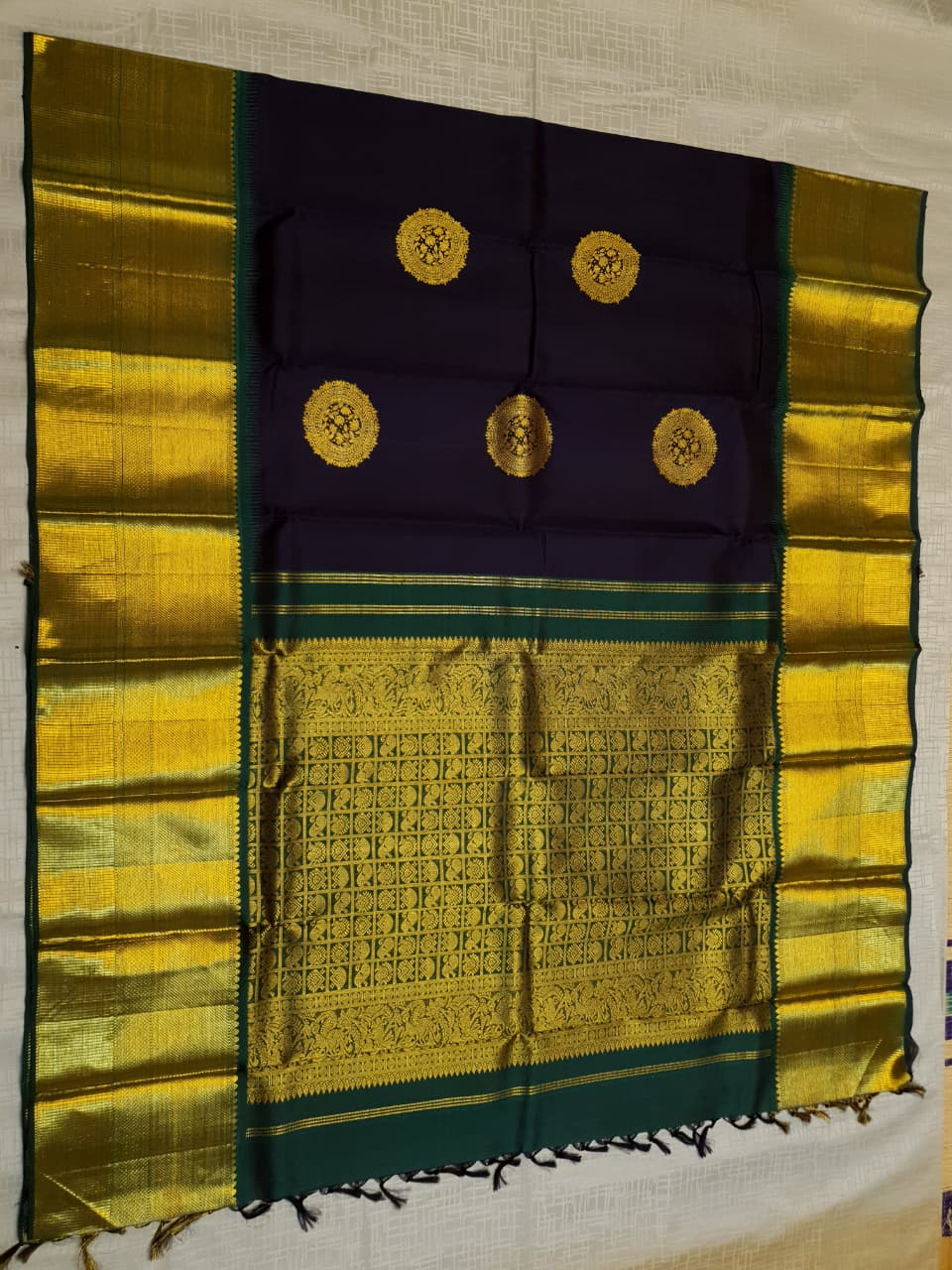 Midnight Blue Kanchipuram Handloom 2G Gold Pattu Silk Saree