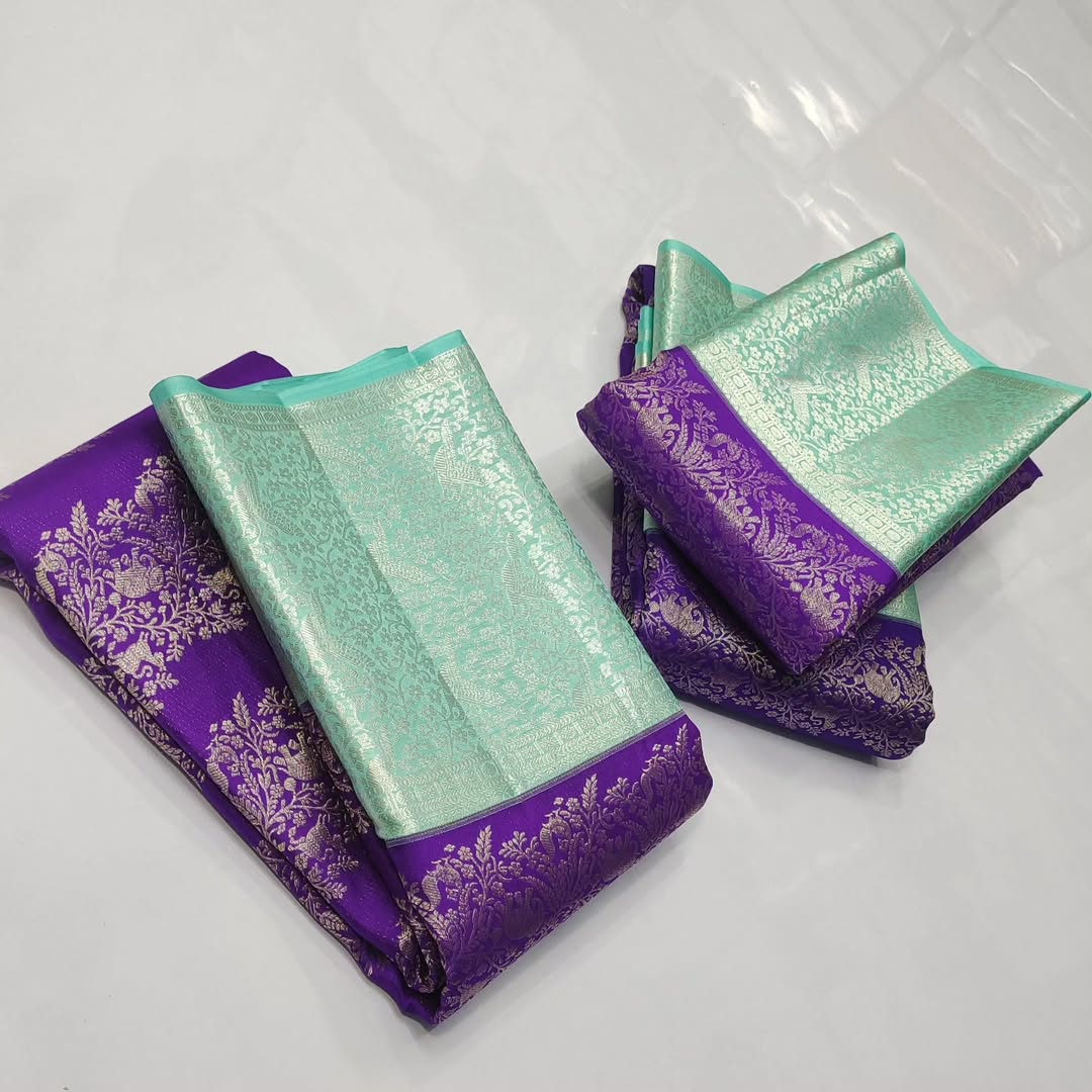 Purple Kanchipuram Handloom Resham Brocade Meenakari Silk Saree