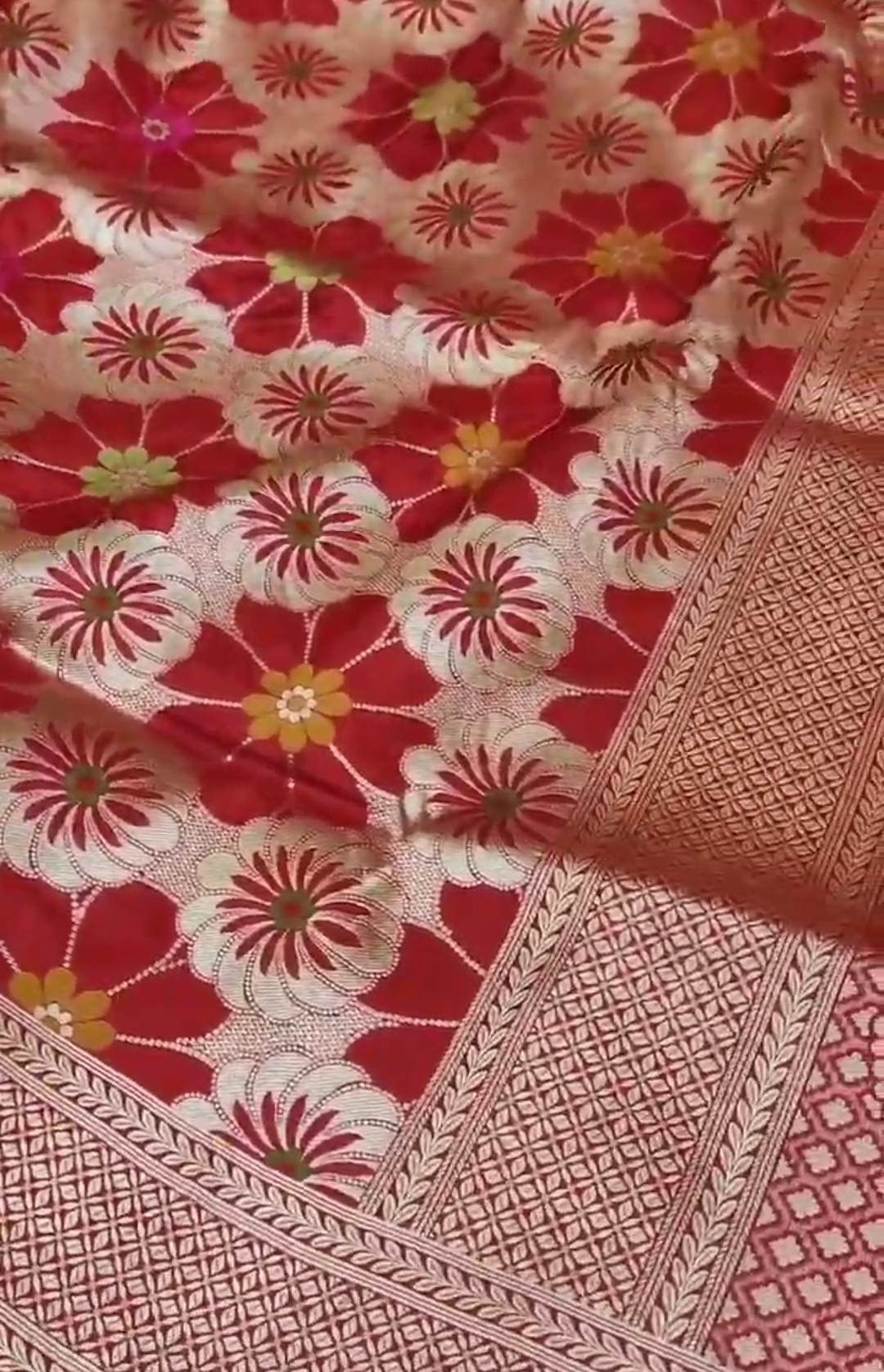 Red Banarasi Handloom Katan Silk Meenakari Saree