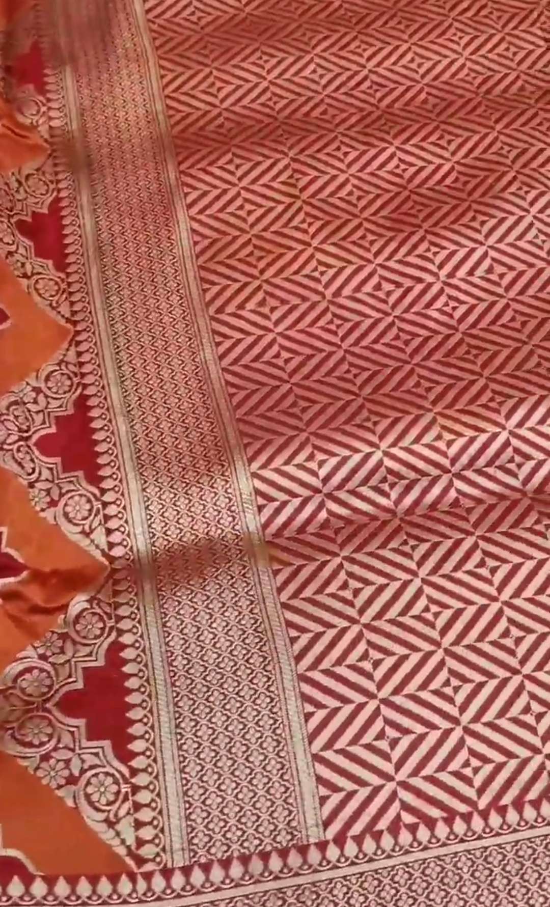 Orange Banarasi Handloom Katan Silk Rangkaat Meenakari Saree