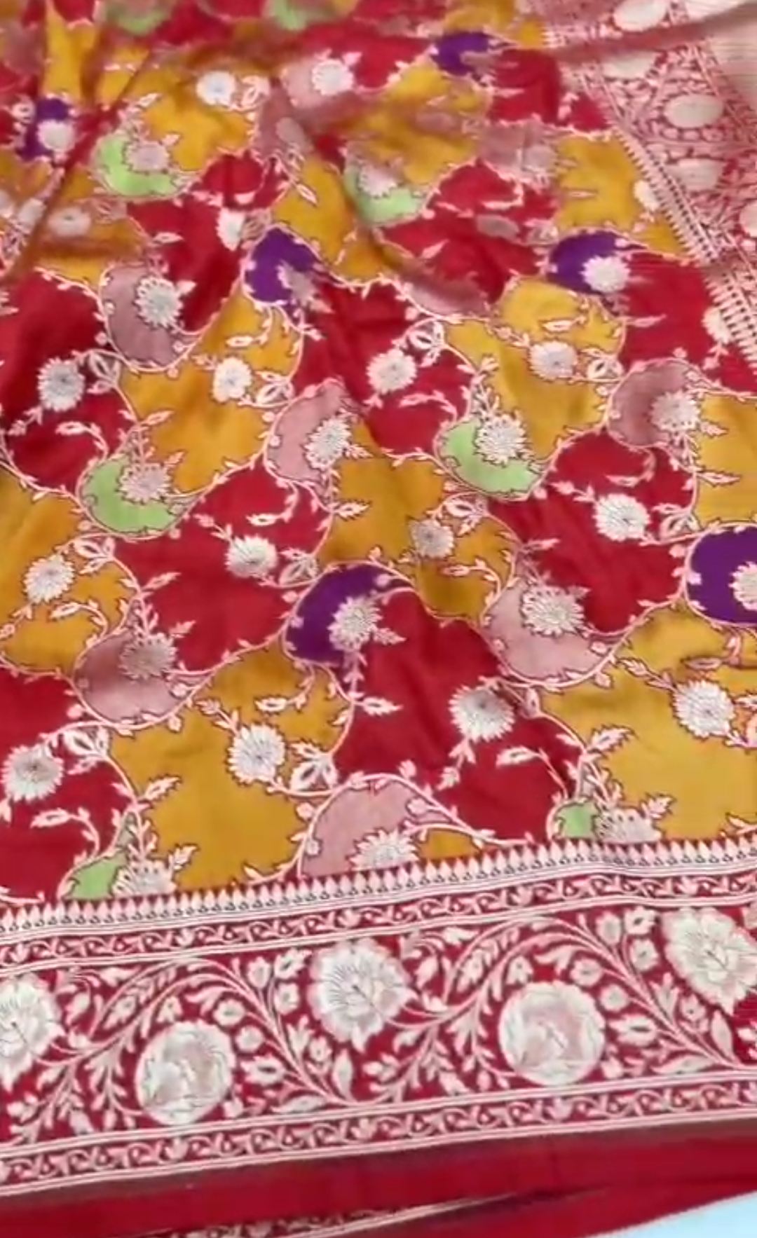 Red Banarasi Handloom Katan Silk Meenakari Saree