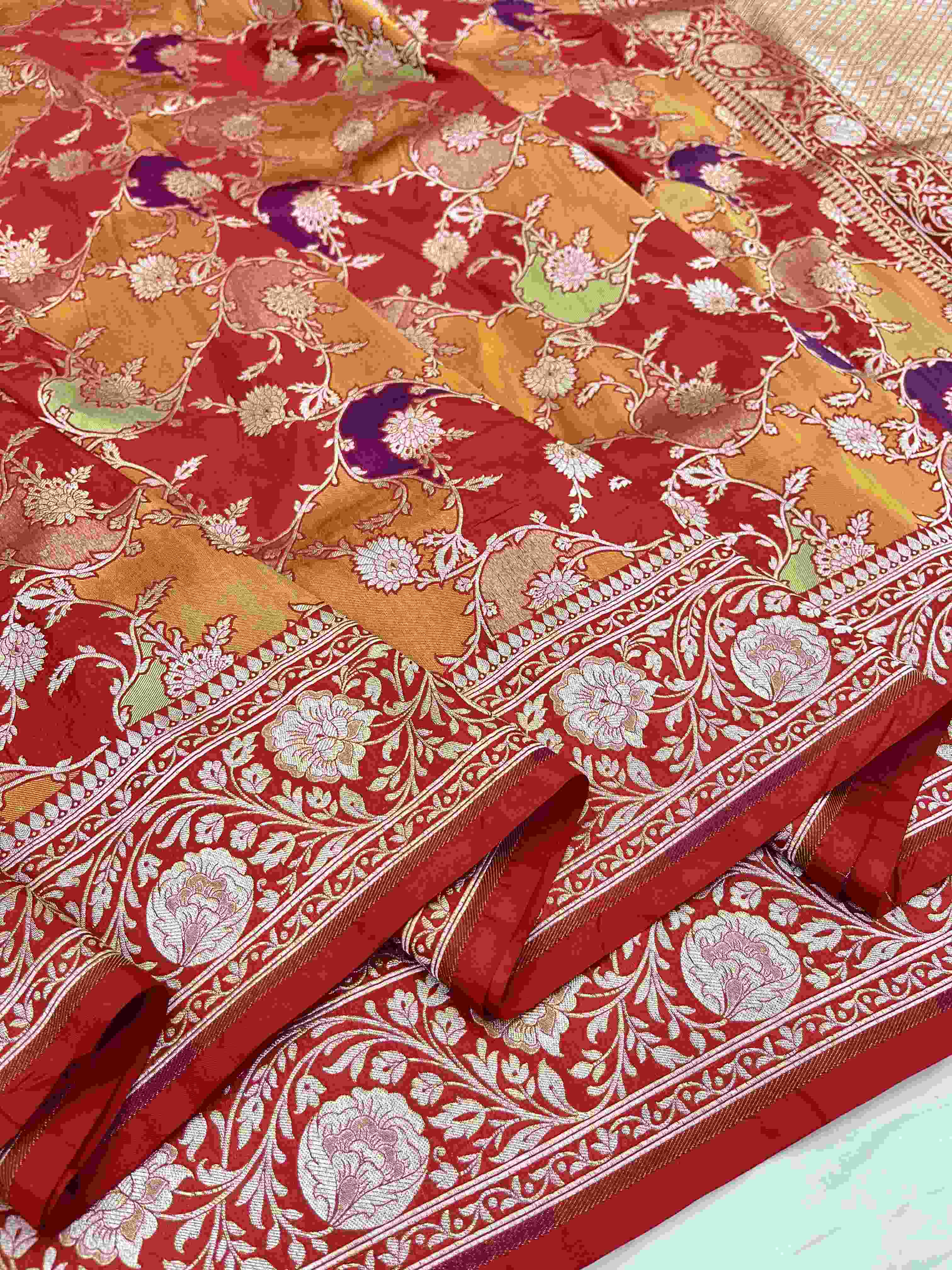 Orange Banarasi Handloom Katan Silk Meenakari Saree