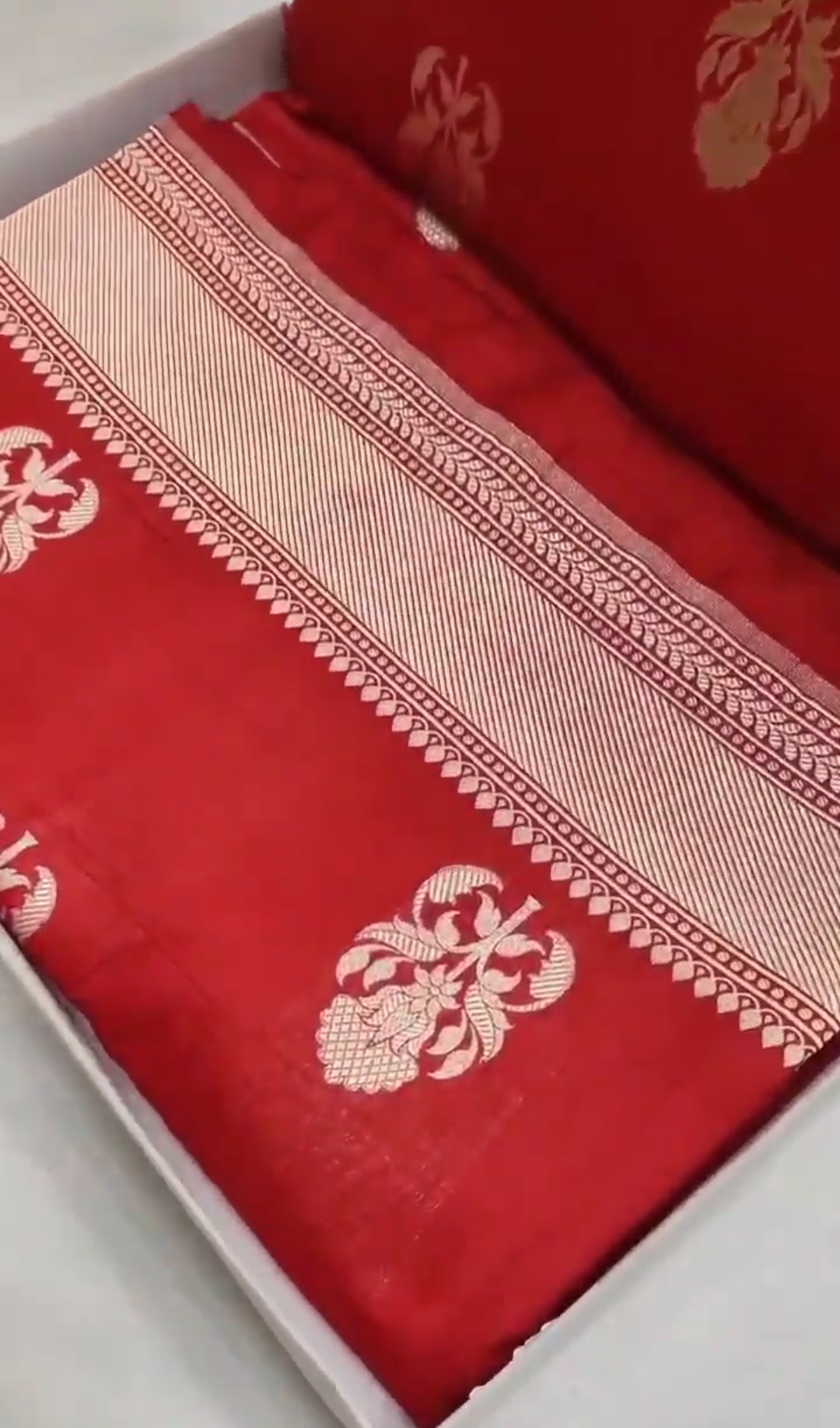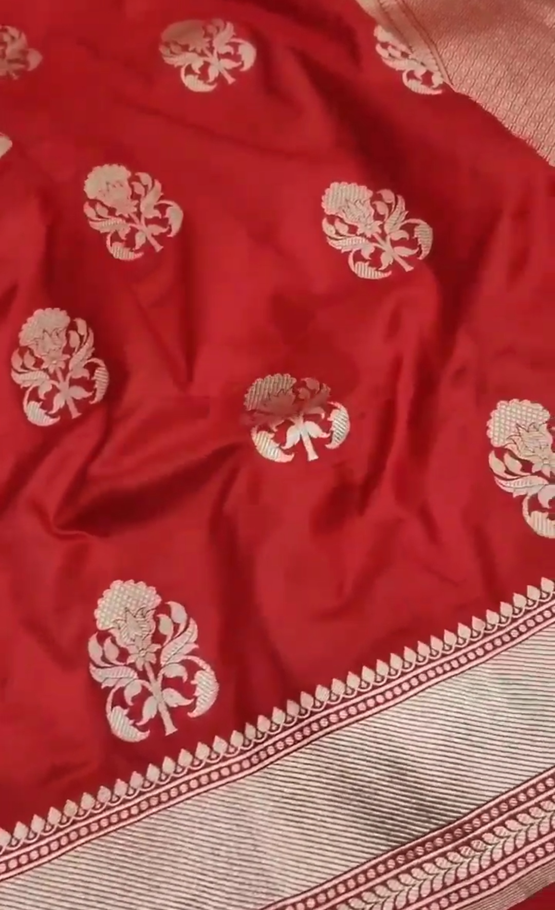 Red Banarasi Handloom Katan Silk Sona Rupa Saree