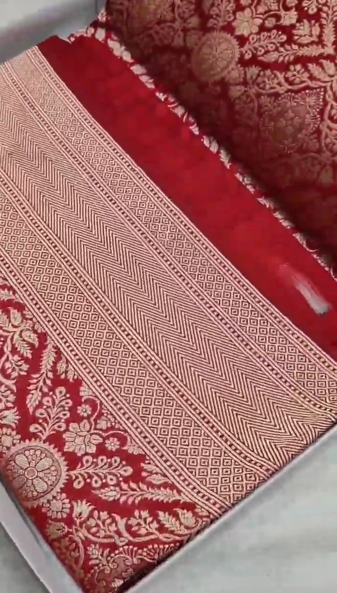 Red Banarasi Handloom Katan Silk Tanchoi Saree
