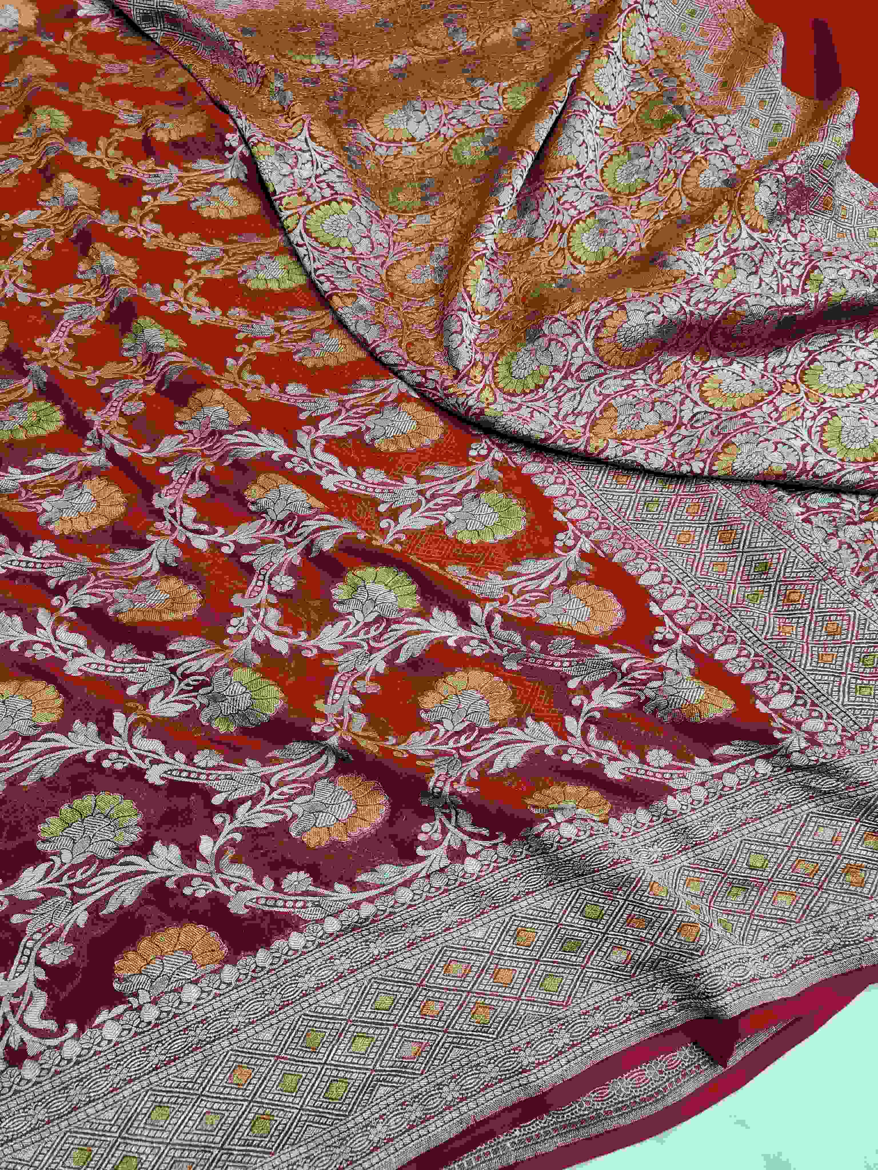 Red Banarasi Handloom Water Zari Georgette Silk Saree