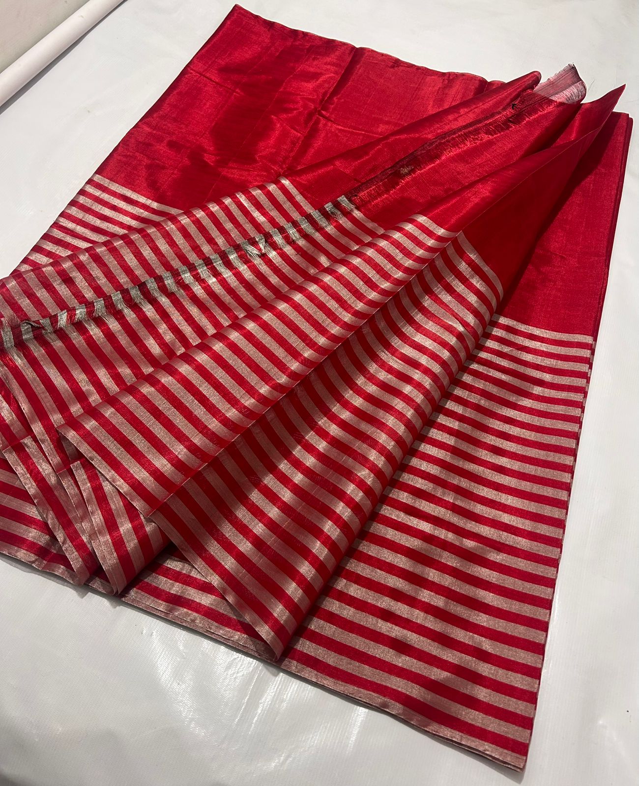 Red Chanderi Handloom Metallic Tissue Silk Contemporary Saree