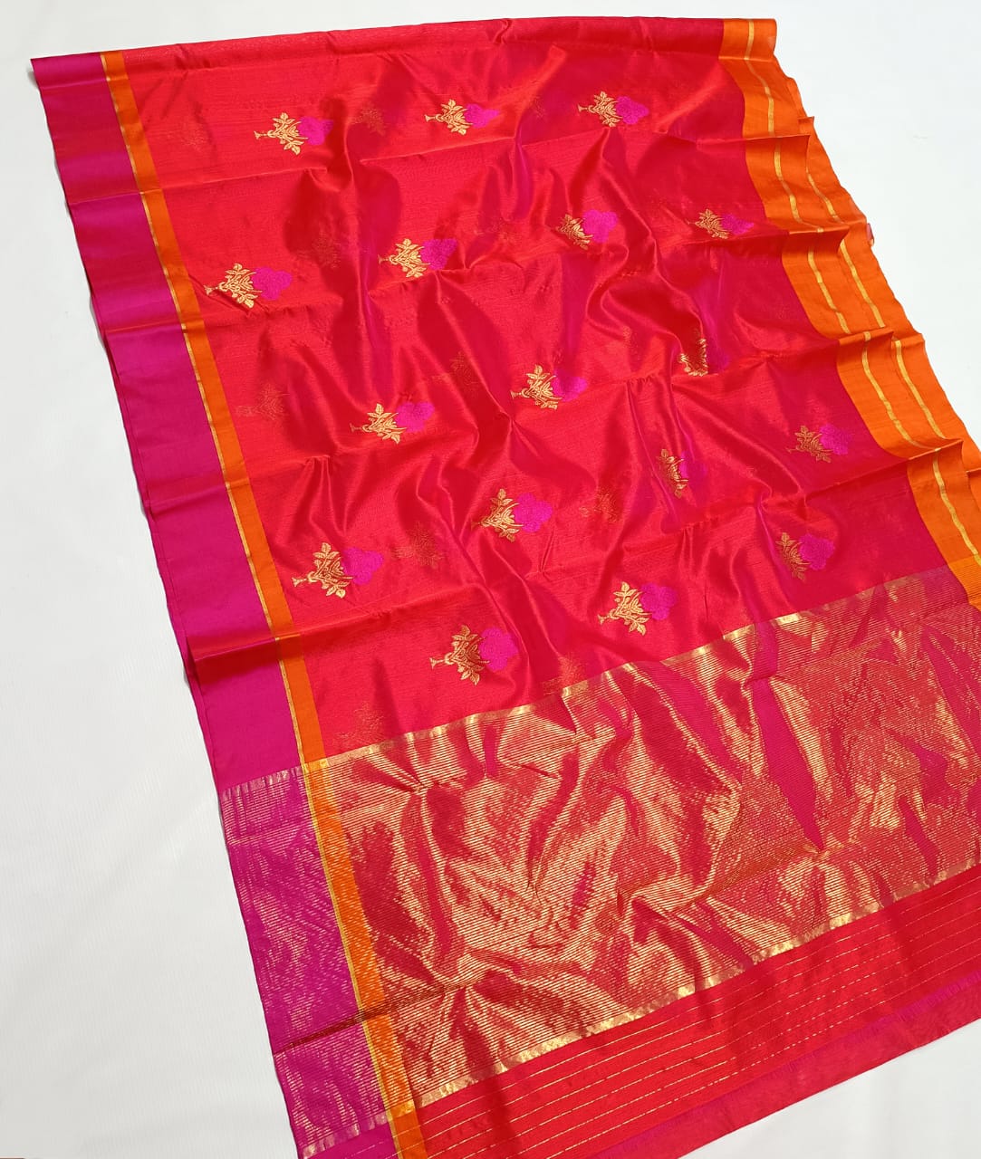 Red Chanderi Handloom Pattu Silk Meenakari Saree