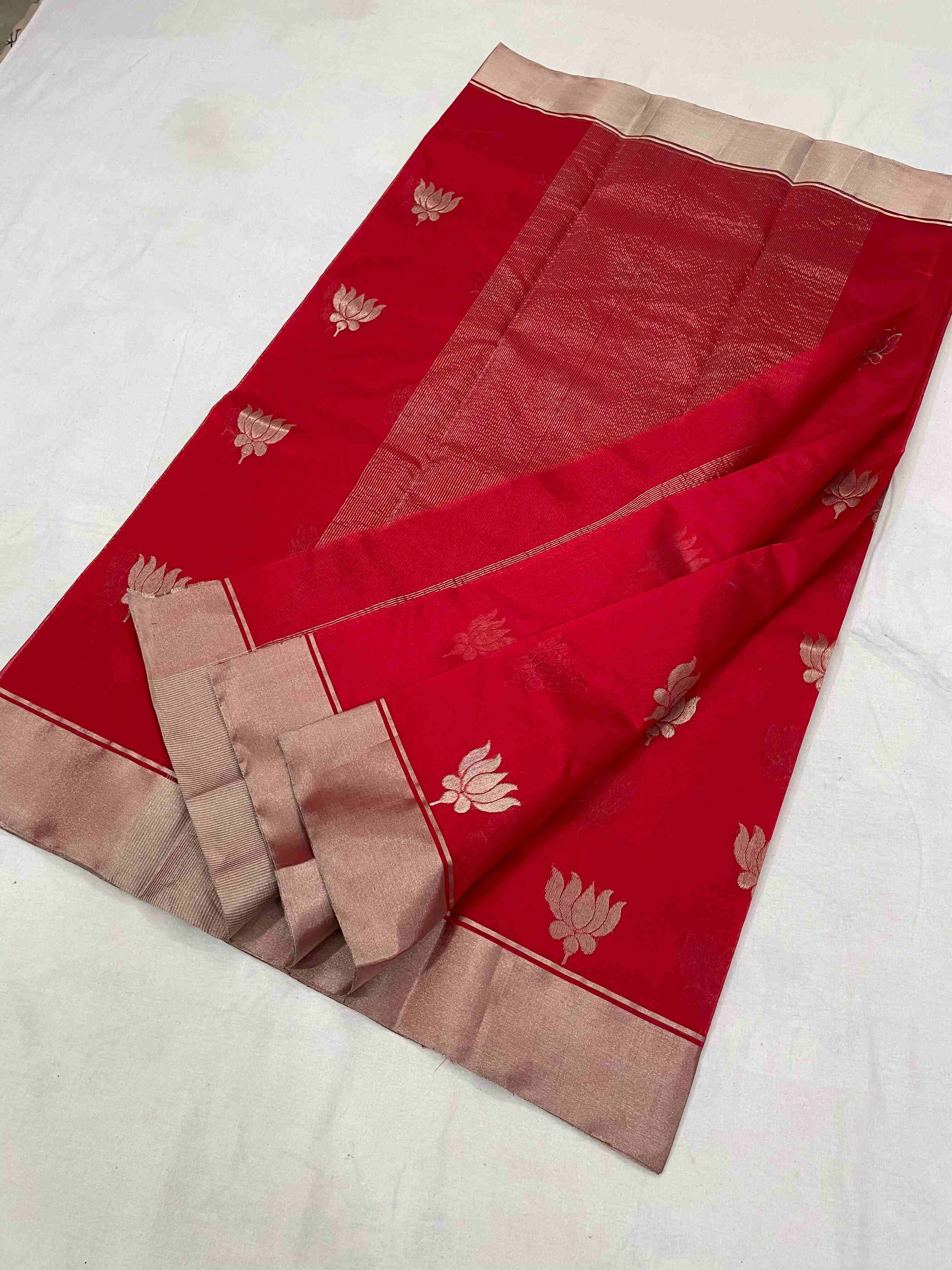Red Chanderi Handloom Pattu Silk Bridal Saree