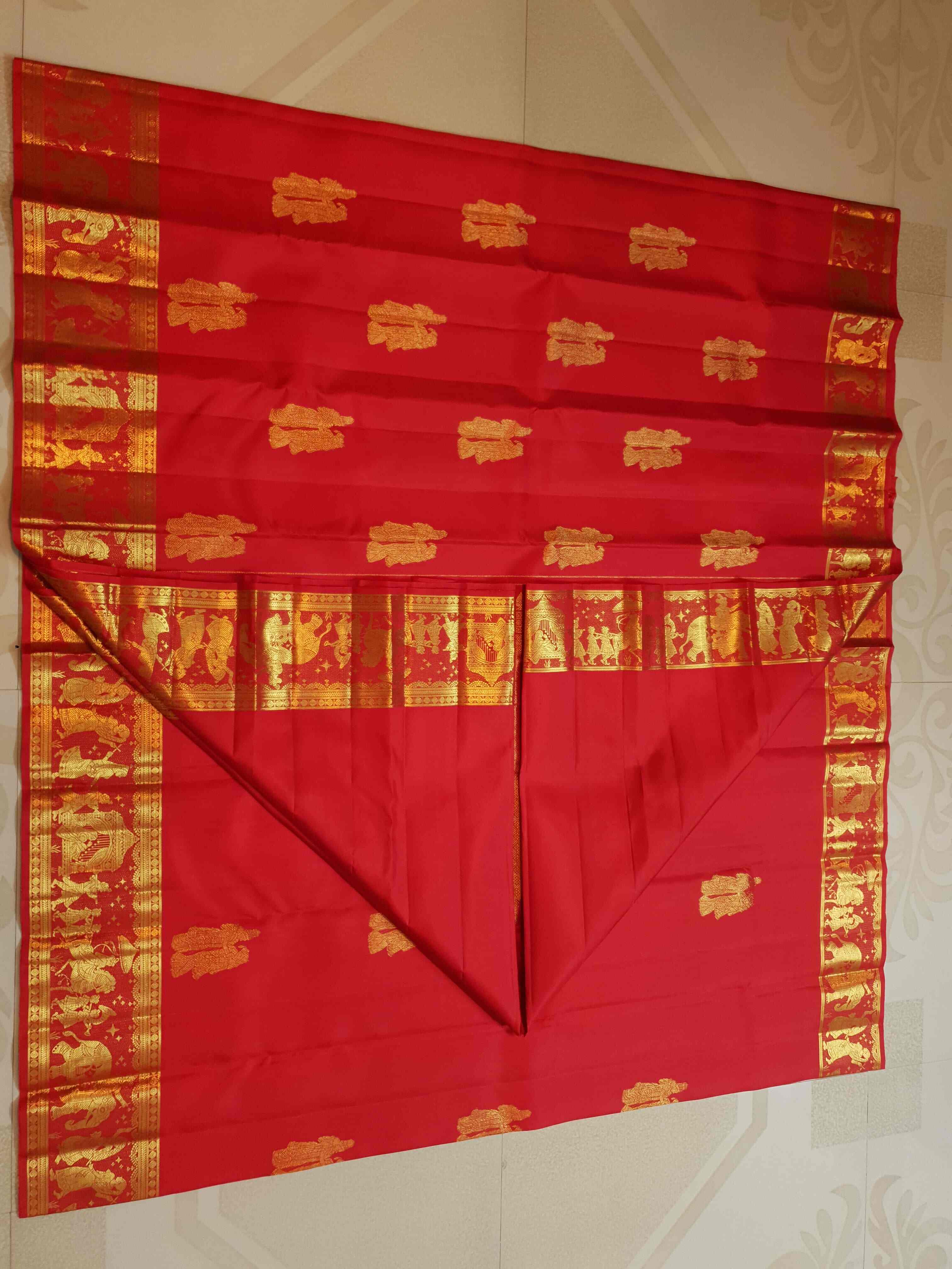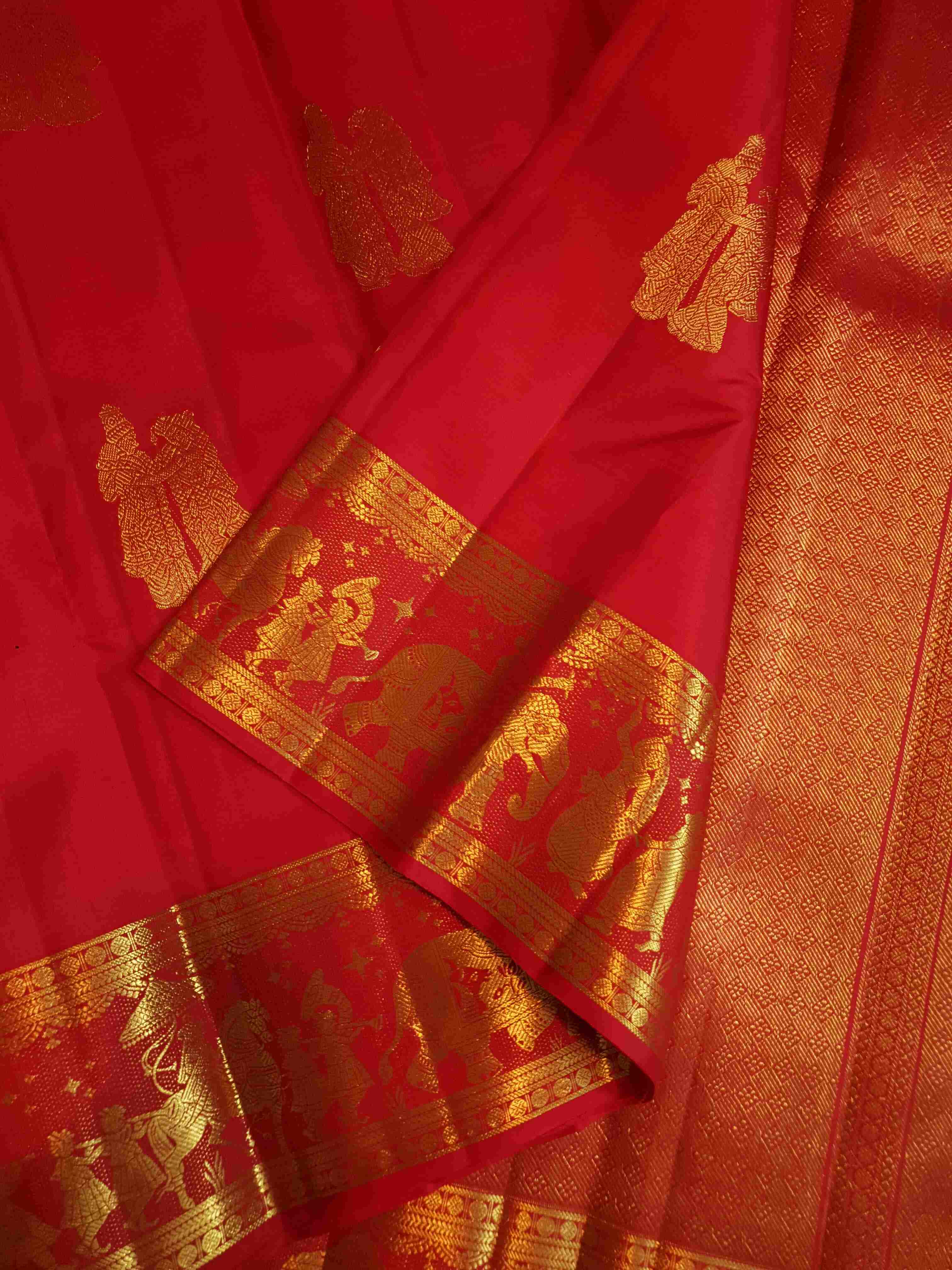 Red Kanchipuram Handloom 2G Gold Kalyana Pallakku Silk Saree