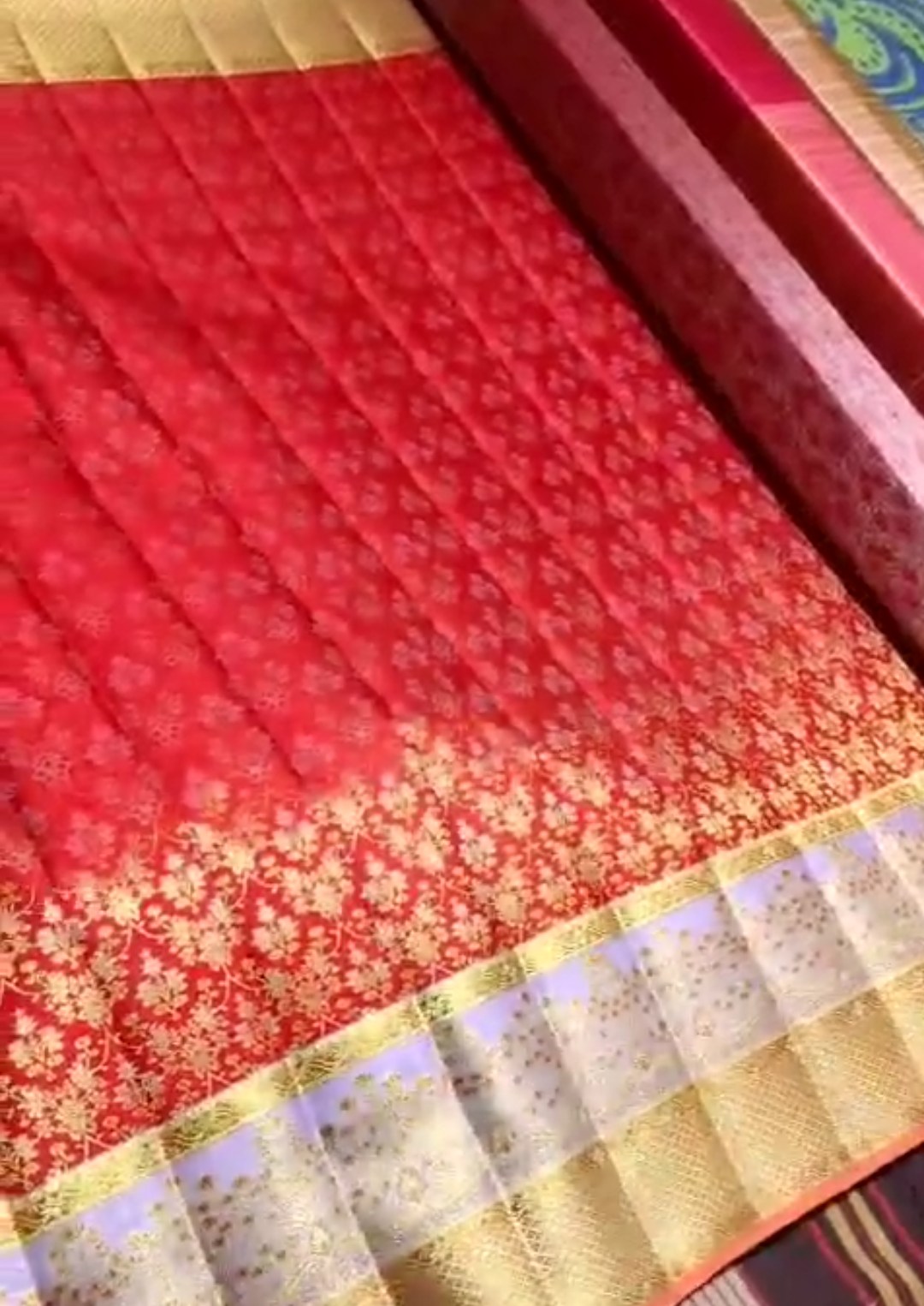 Red Kanchipuram Handloom Tissue 1G Red Brocade Silk Saree
