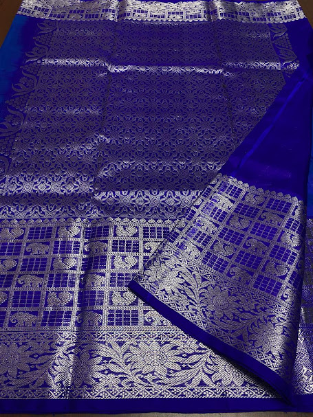 Royal Blue Venkatagiri Handloom Pattu Silk Meenakari Saree