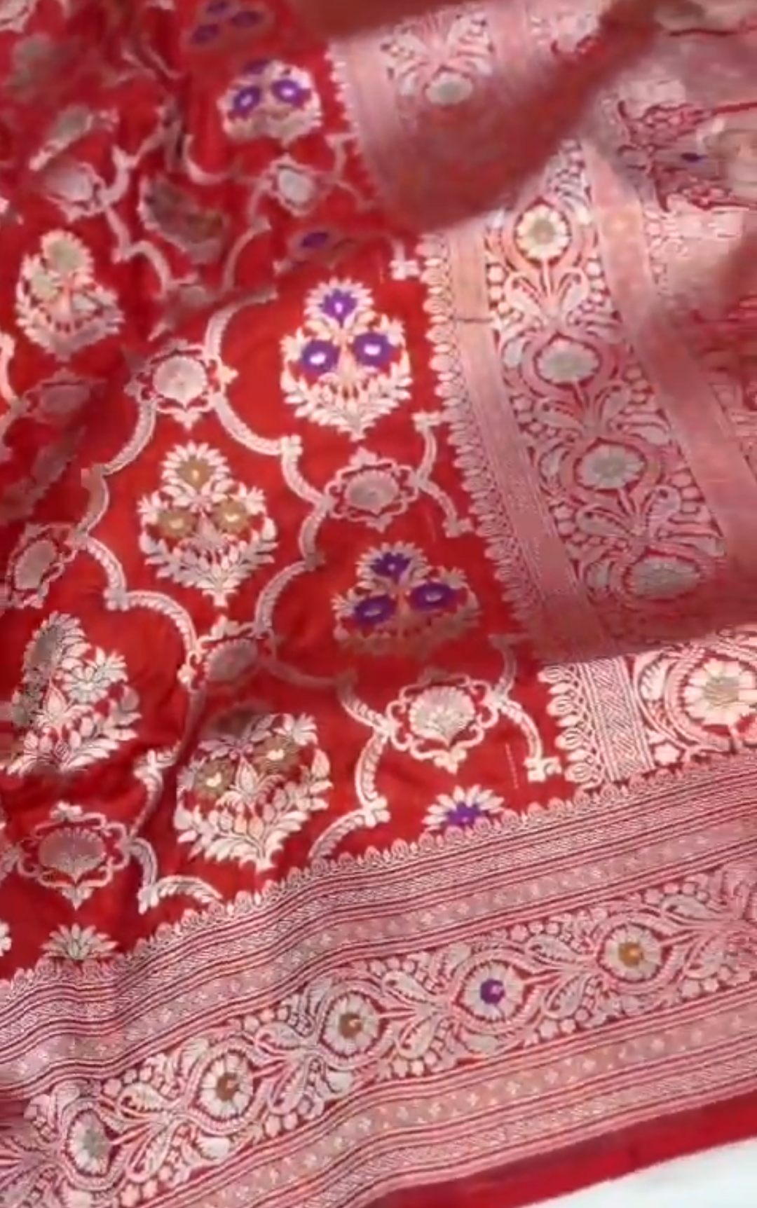 Red Banarasi Handloom Katan Silk Meenakari Bridal Saree