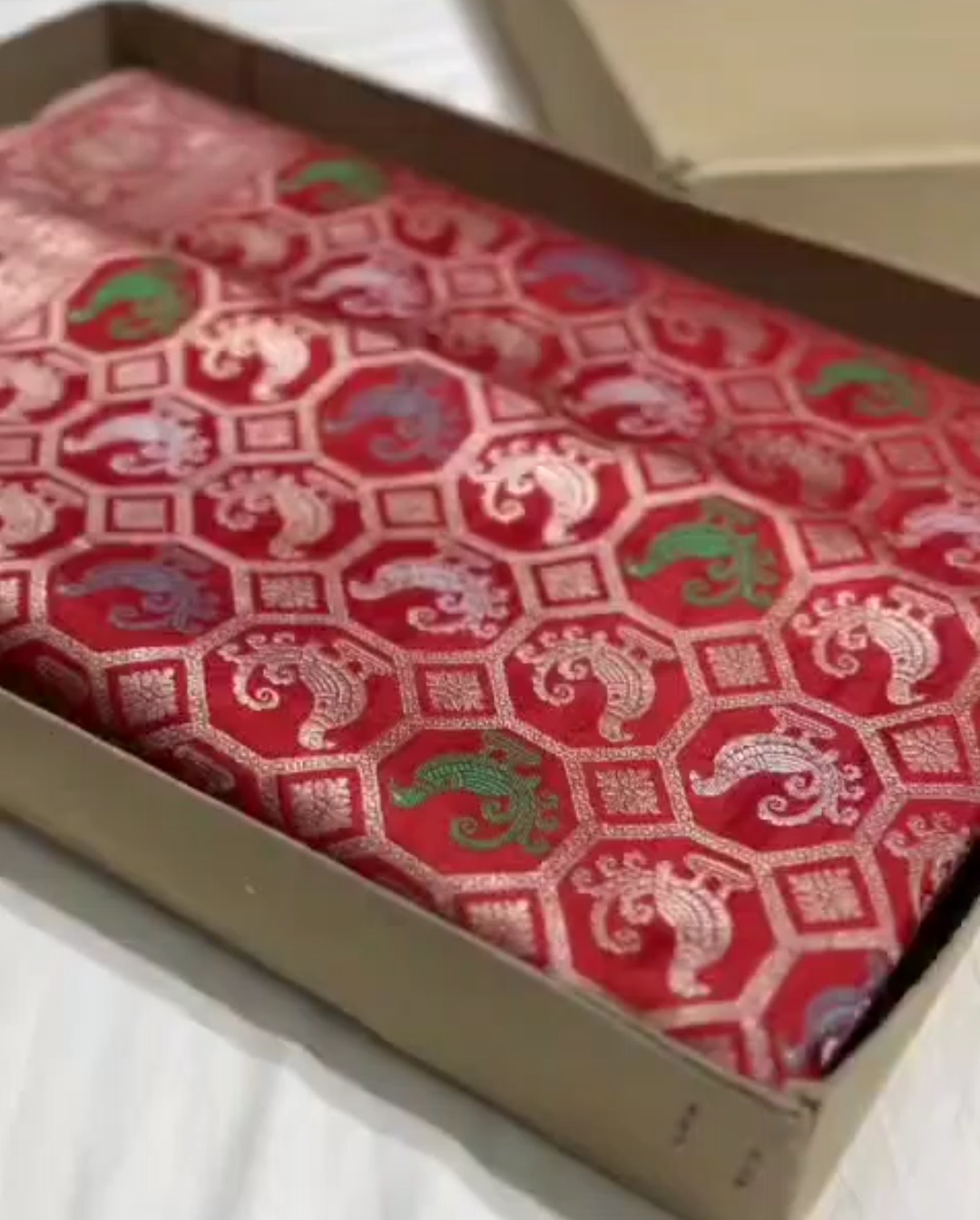 Red Banarasi Handloom Katan Silk Chand Tara Bridal Saree
