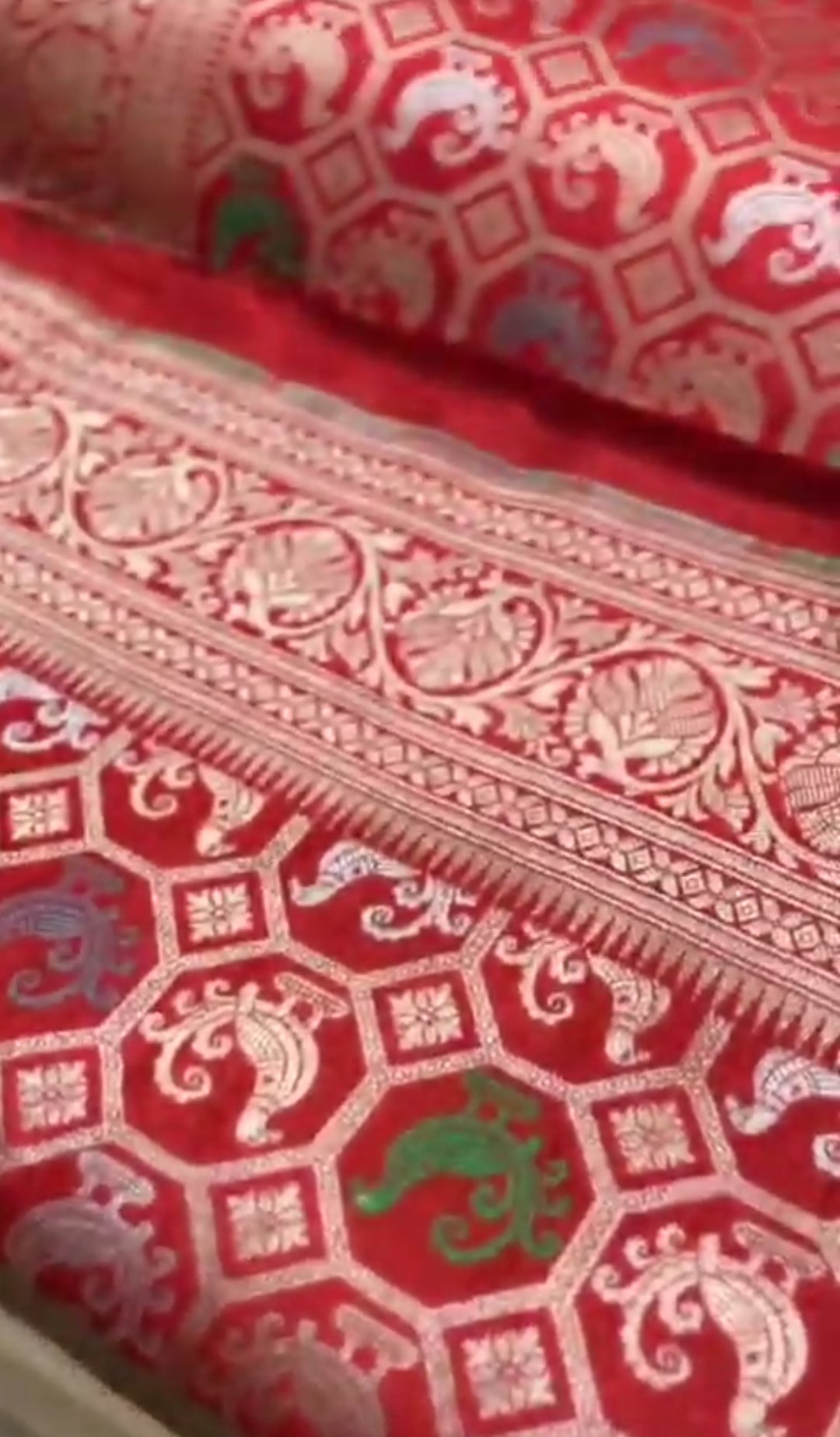 Red Banarasi Handloom Katan Silk Shikargah Meenakari Saree