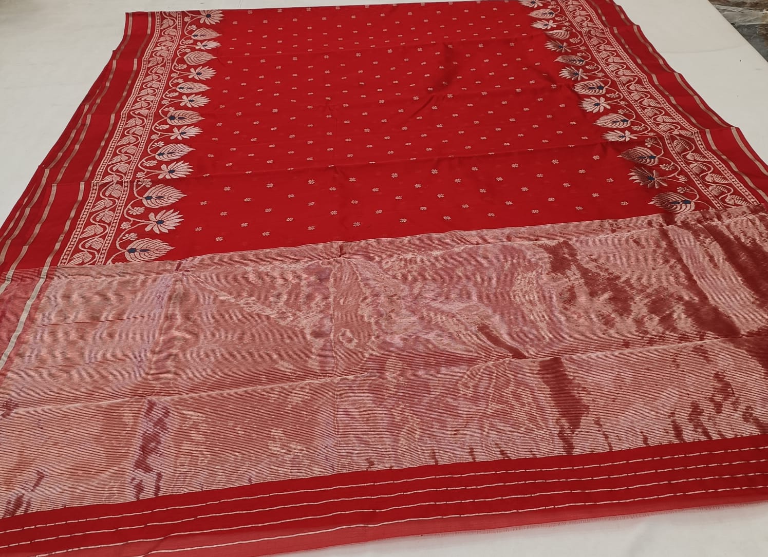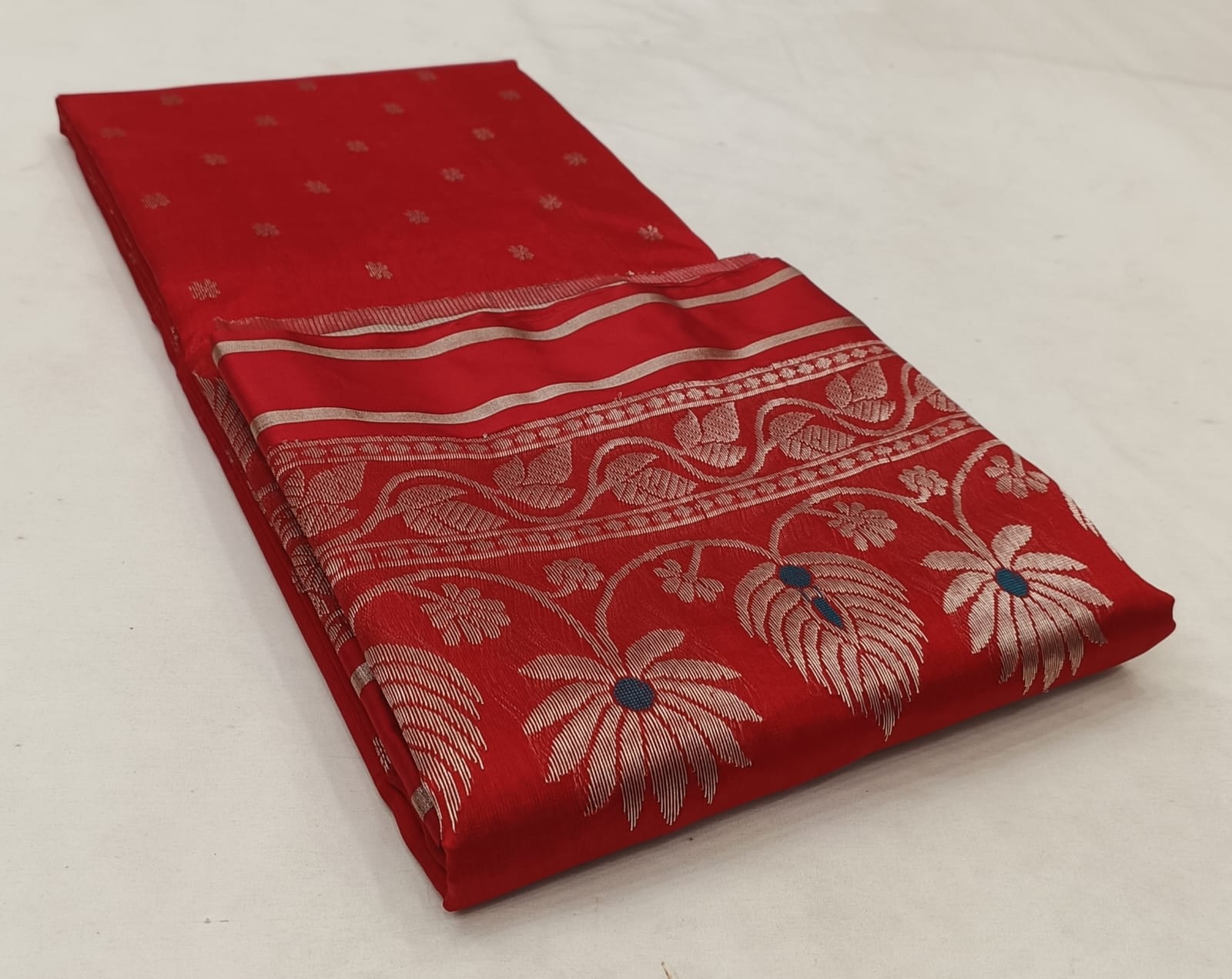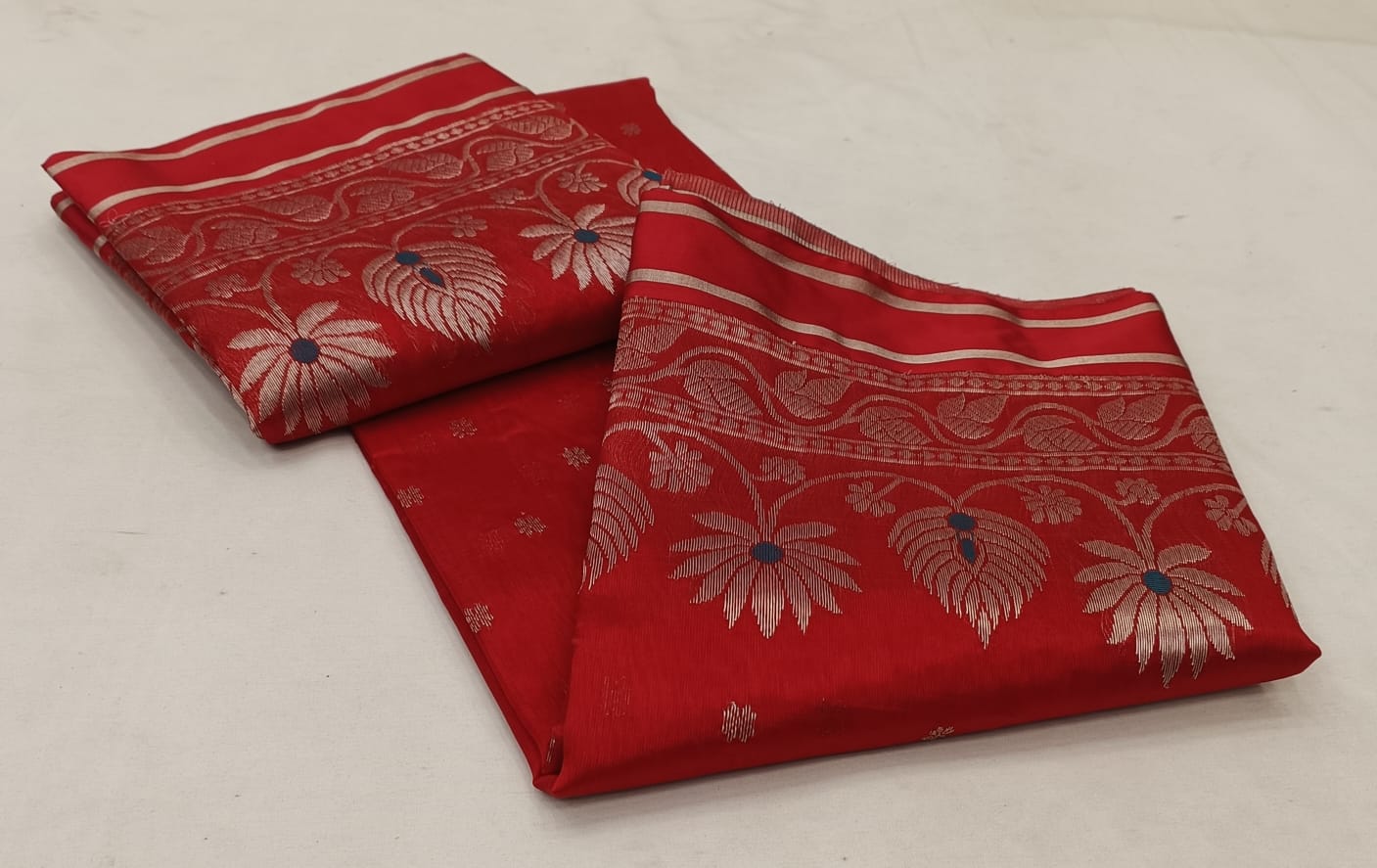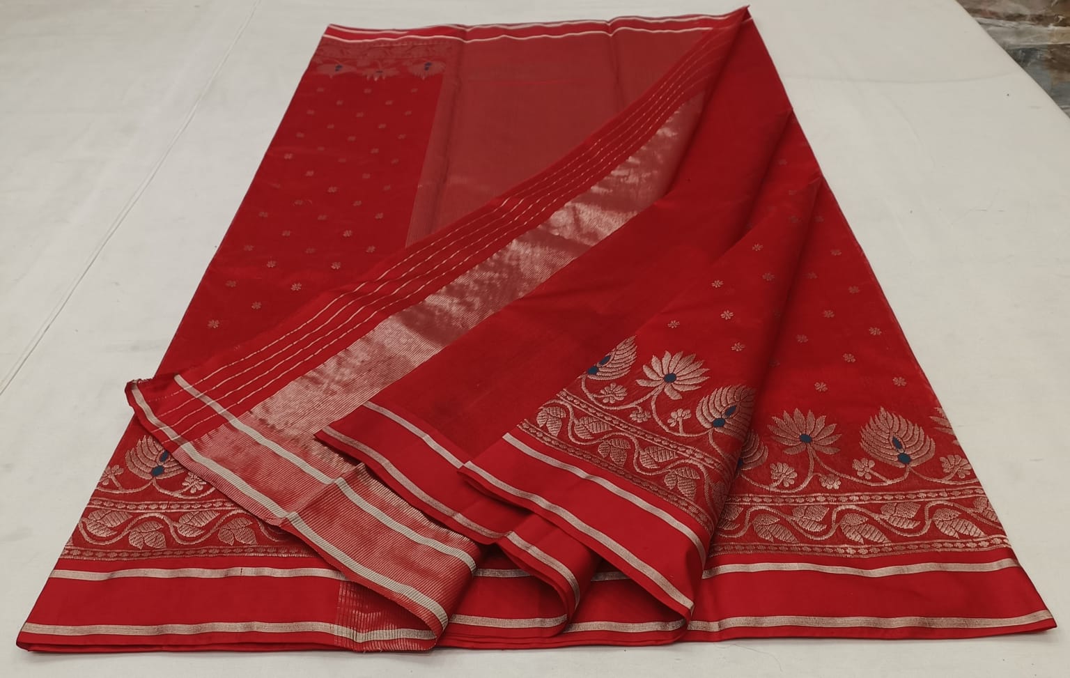 Rustic Red Chanderi Handloom Pattu Silk Meenakari Saree