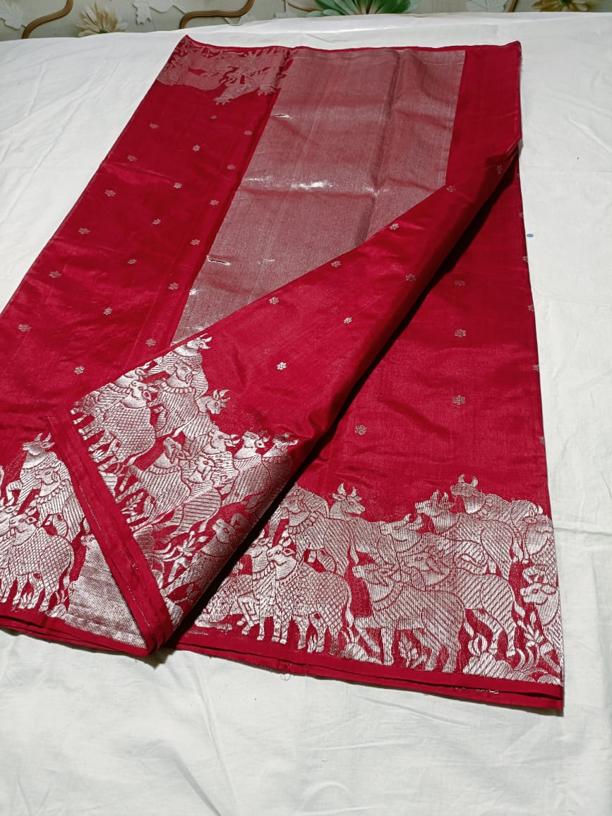 Red Chanderi Handloom Pattu Silk Nakshi Saree