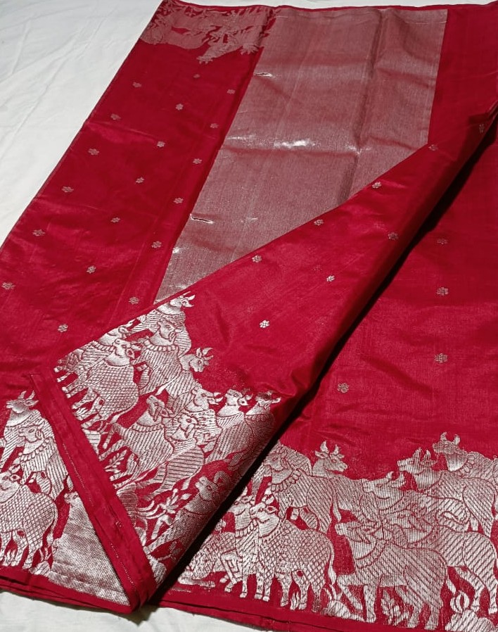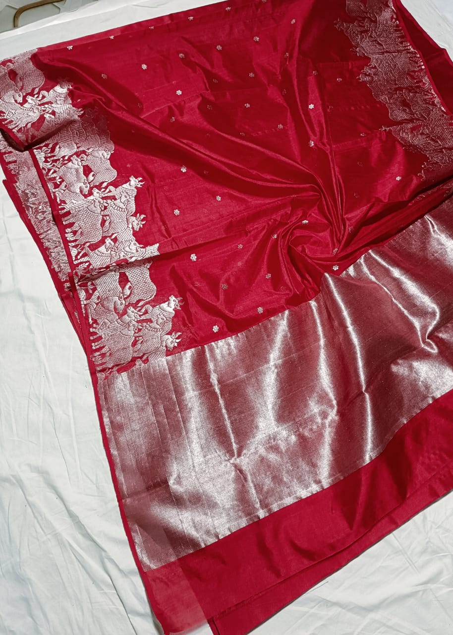 Red Chanderi Handloom Pattu Silk Bridal Saree