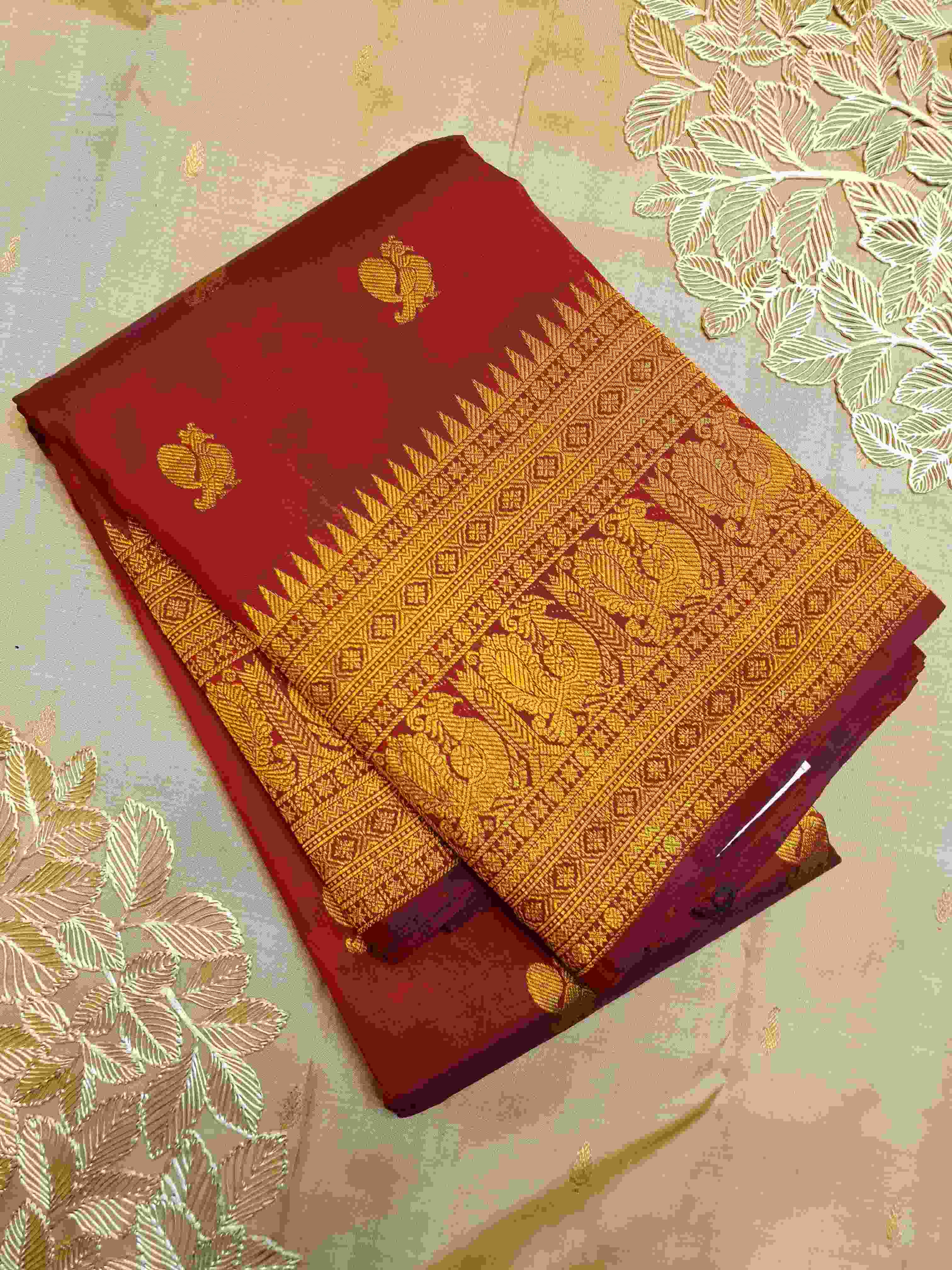 Maroon Kanchipuram Handloom 2G Gold Pattu Silk Saree