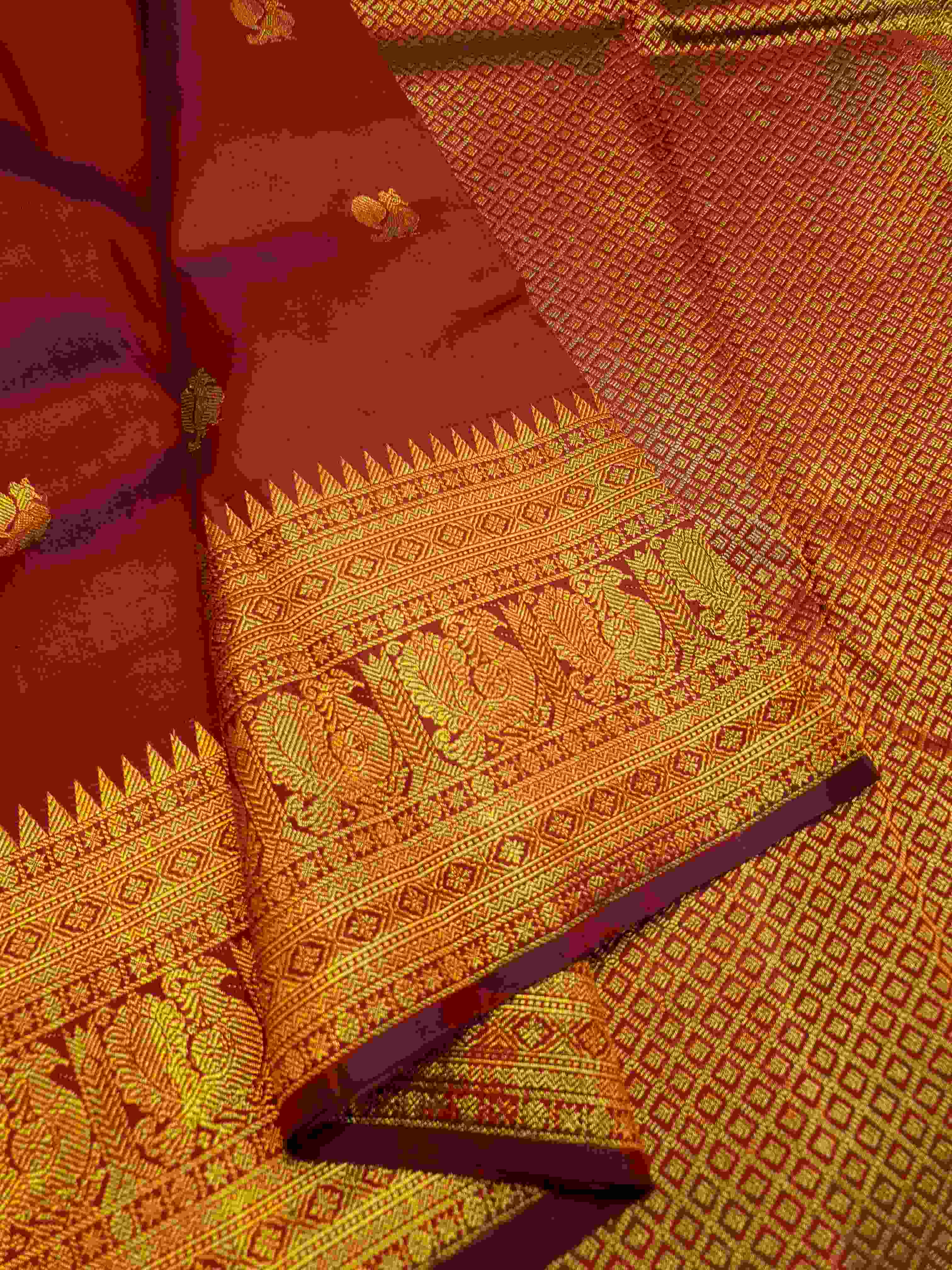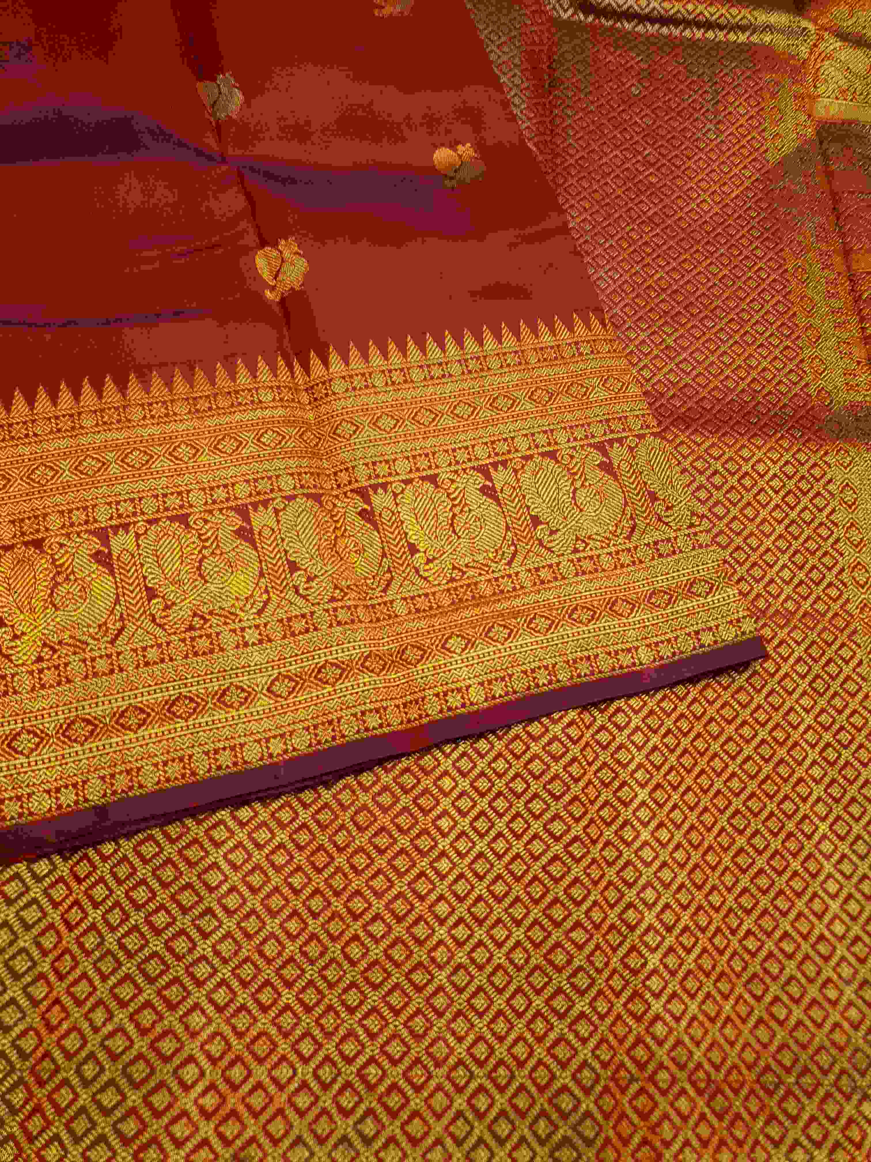 Rustic Red Kanchipuram Handloom 2G Gold Pattu Silk Saree