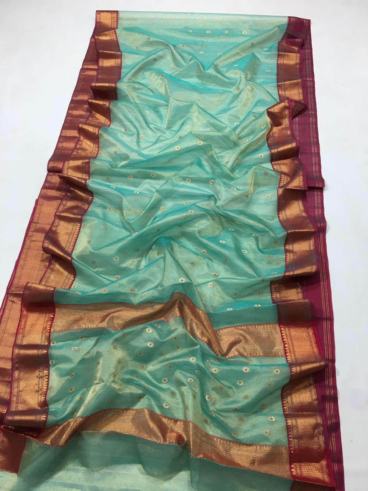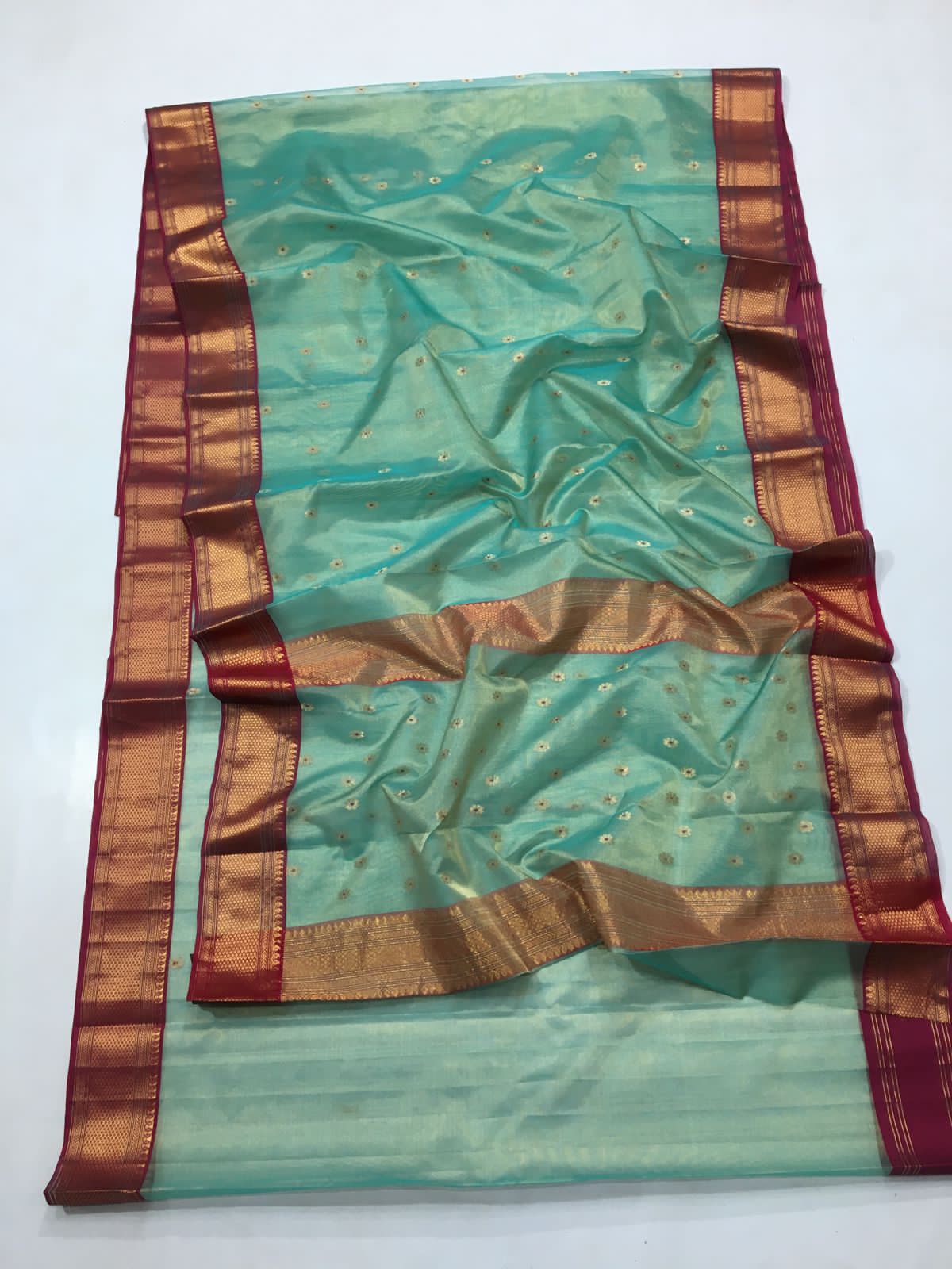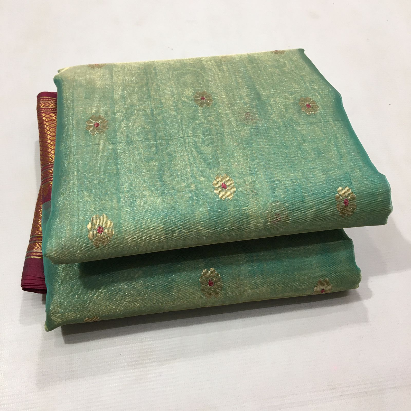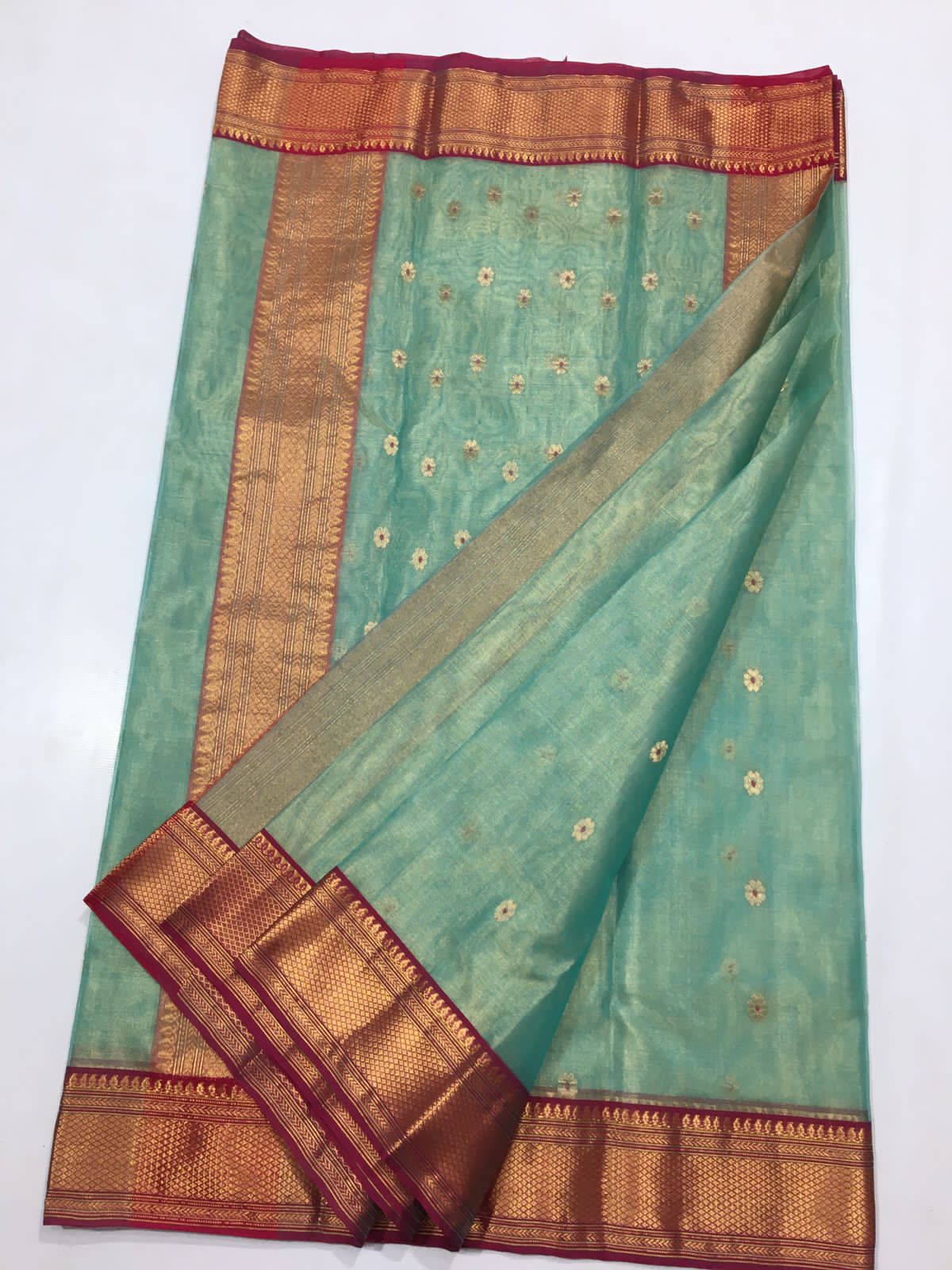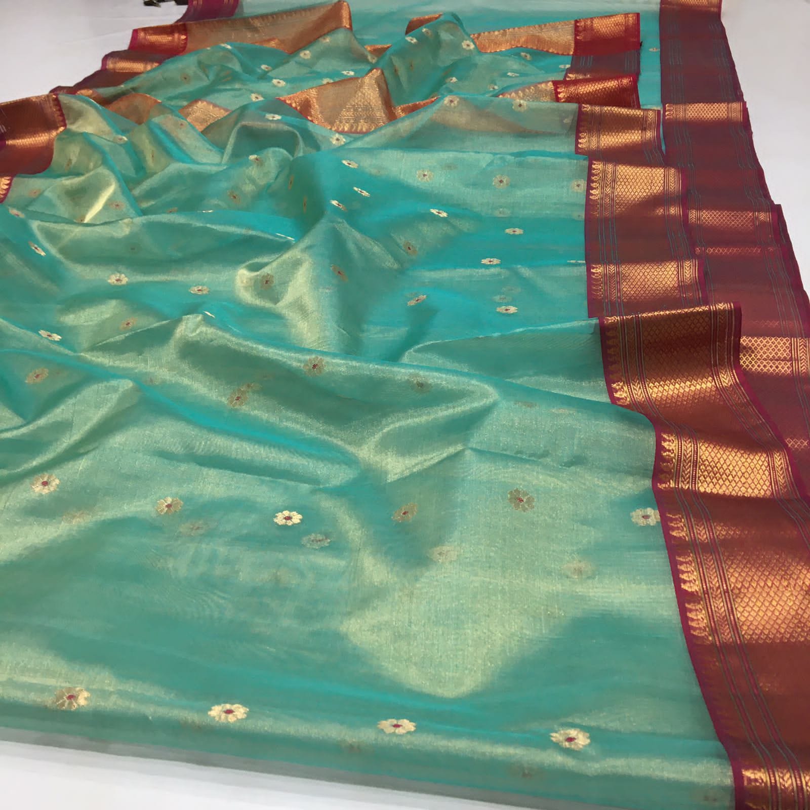 Sea Green Chanderi Handloom Katan Tissue Silk Meenakari Saree
