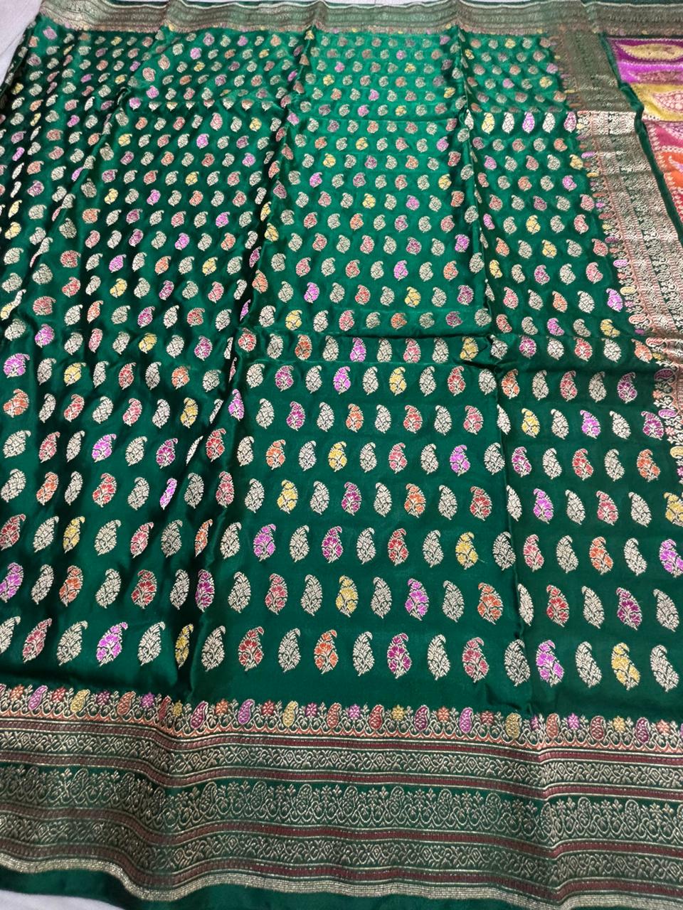 Banarasi Handloom Silk Saree, Heirloom Sarees, Banarasi Handloom Pure Katan Silk Saree, Banarasi Handloom Pure Katan Silk Meenakari Saree