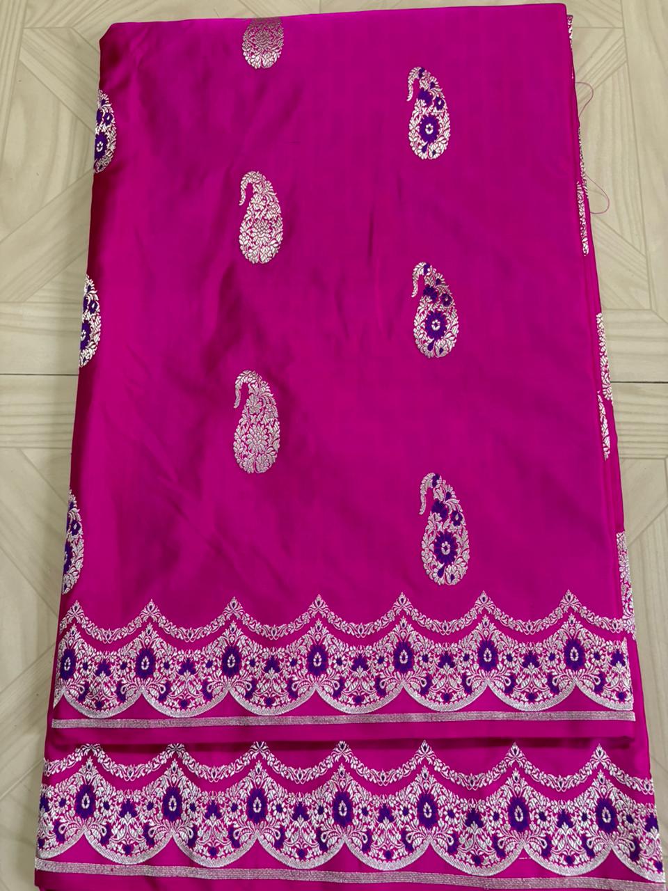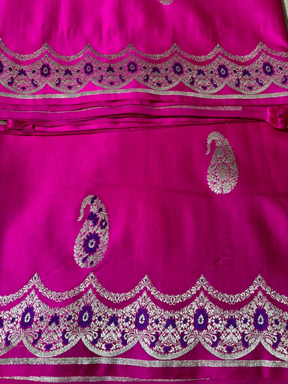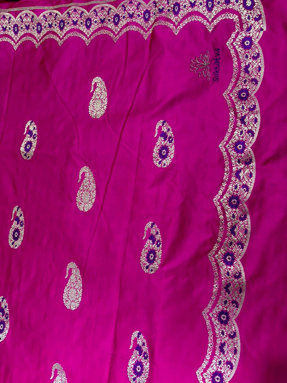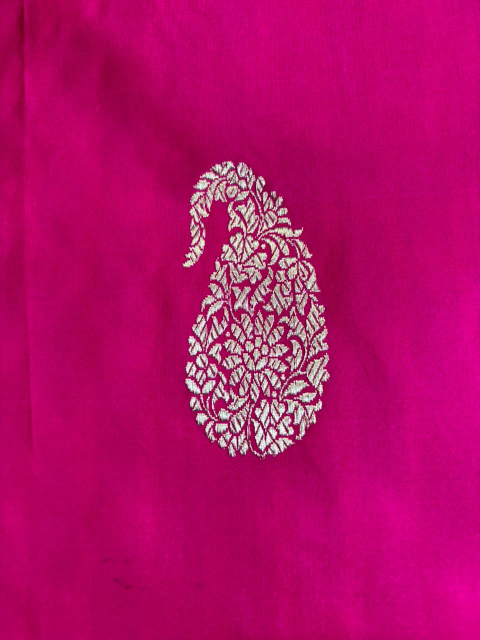Silk Tatva 'Boteh' Fuschia Pink Banarasi Handloom Silver Zari Katan Silk Saree