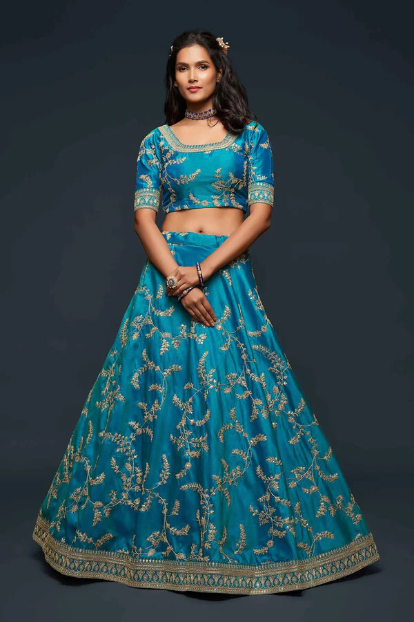 Teal Blue Silk Lehenga with Thread, Zari & Sequins Work